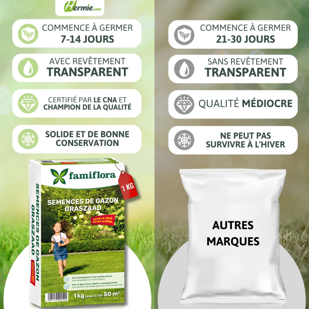 Grâce à ce mélange de graines de gazon play & sports de Famiflora, votre pelouse peut en prendre pour son grade !  🌱