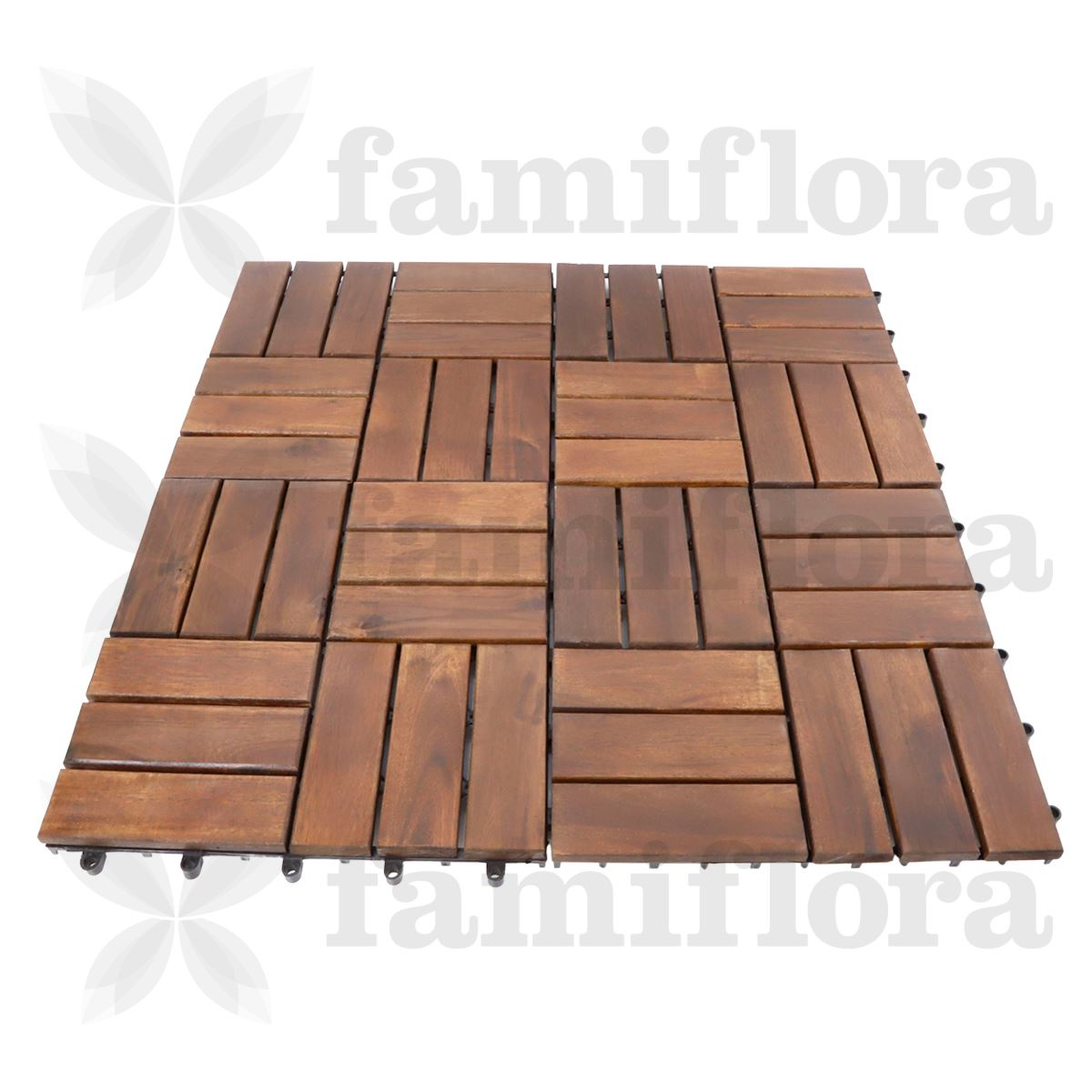 Informations sur le produit "Dalles de terrasse en bois en acacia 30x30cm - mosaïque - brun foncé - 9 pièces = 0,81m²"