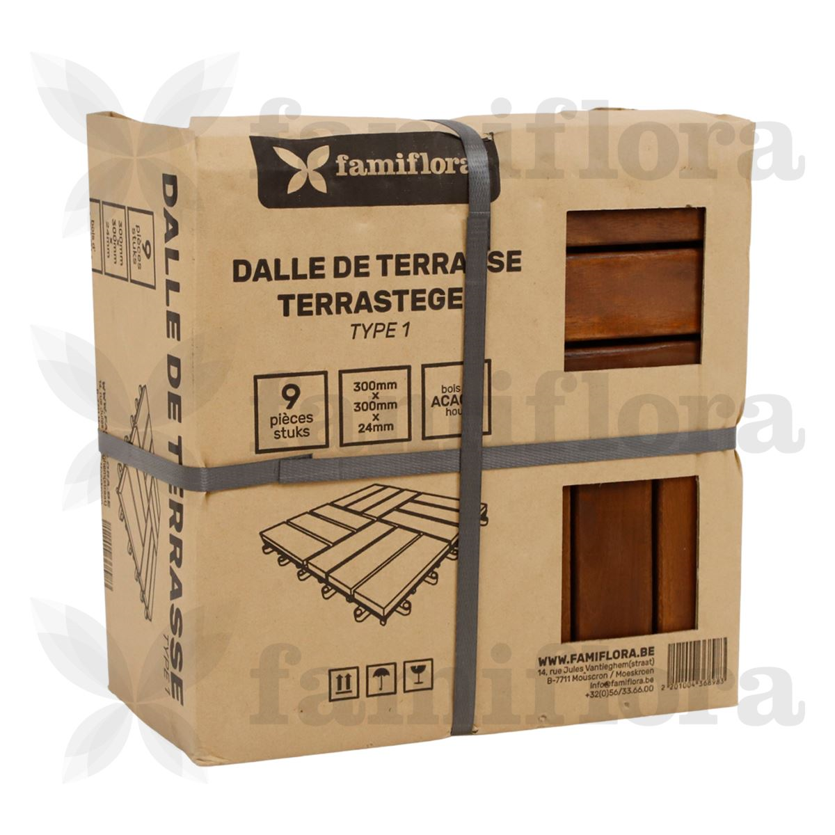• Dalles de terrasse en bois en acacia 30x30cm
