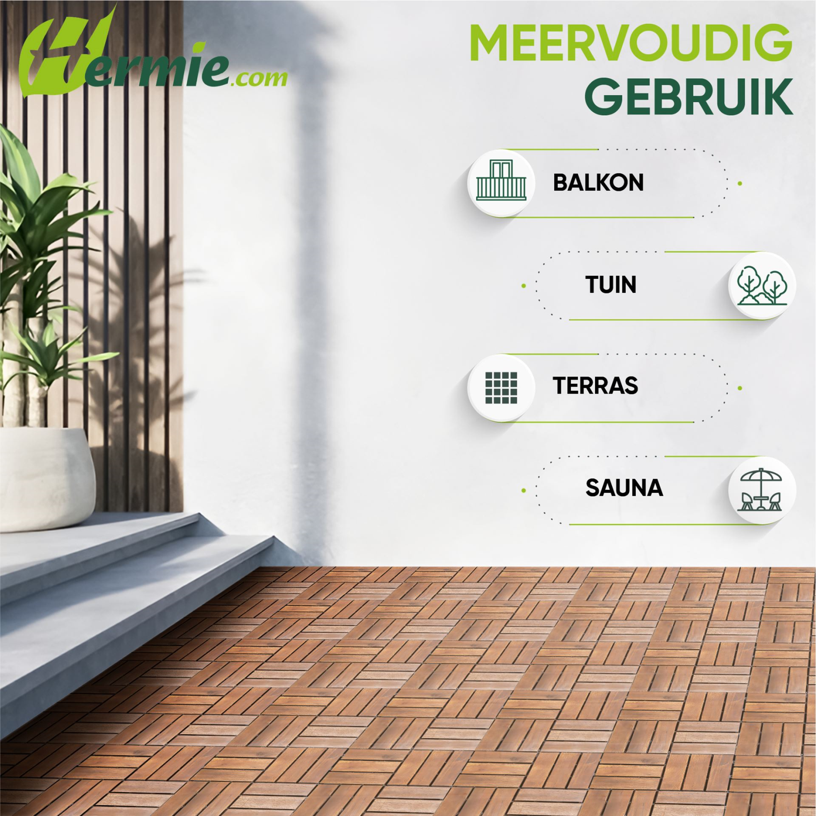 Comme le bois n'entre pas en contact avec le sol, il est extrêmement résistant aux intempéries et la tuile a une longue durée de vie. En outre, le bois est déjà protégé par une couche d'huile.