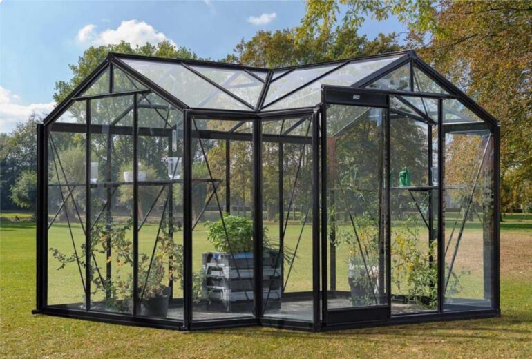 Les lignes épurées et les parois en verre créent un aspect léger et ouvert qui s'intÚgre parfaitement dans n'importe quel jardin.