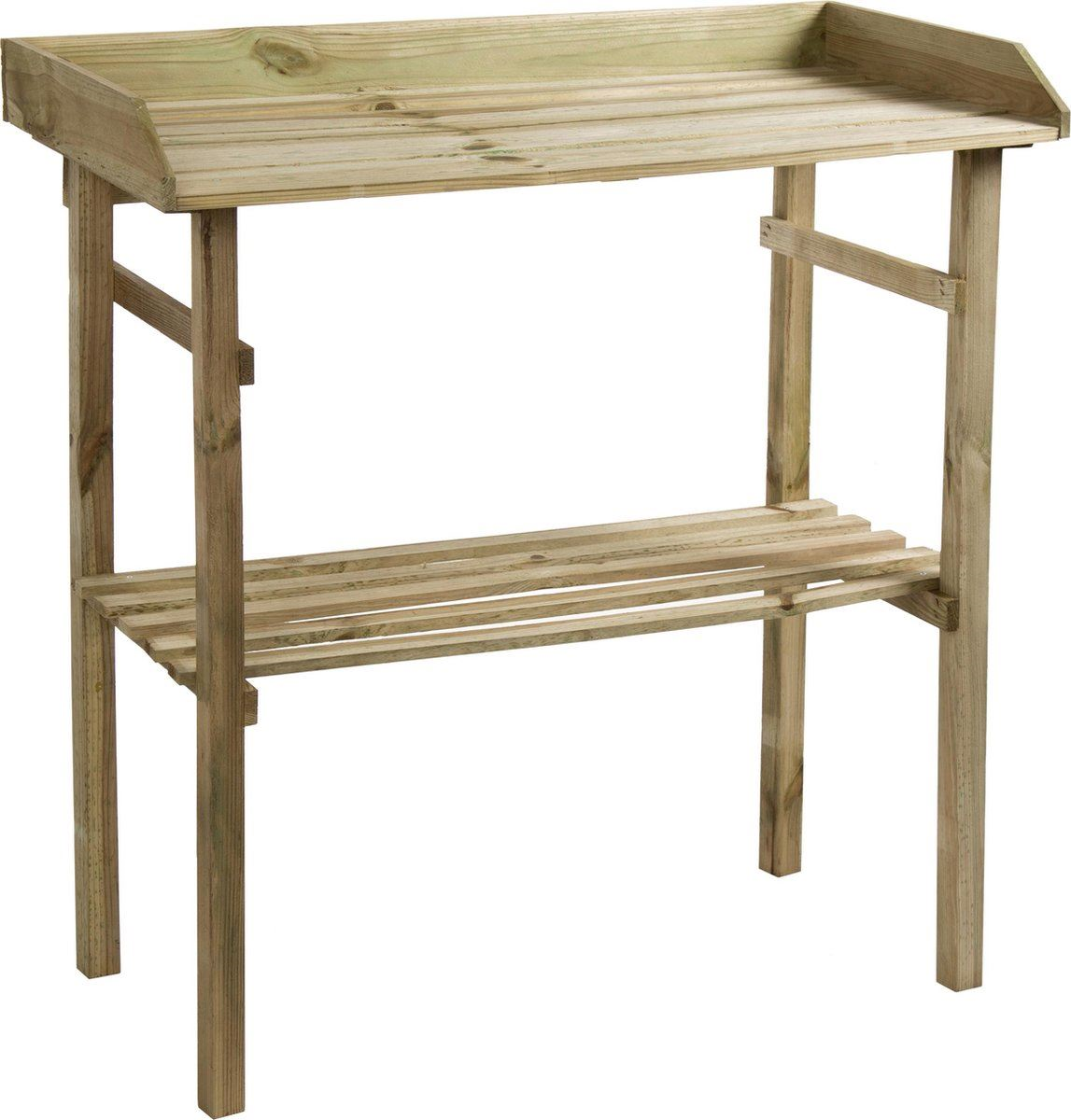 Cette table de rempotage au design simple est un excellent choix pour les jardiniers. Elle peut également servir d'établi pour garder vos outils et accessoires à portée de main. Cette table est certifiée FSC. Elle dispose d'une grande surface de travail et d'une étagère en bas pour poser vos pots de fleurs. Cette table de rempotage est facile à assembler. Veuillez noter que le bois est un produit naturel et qu'il peut donc présenter des irrégularités.