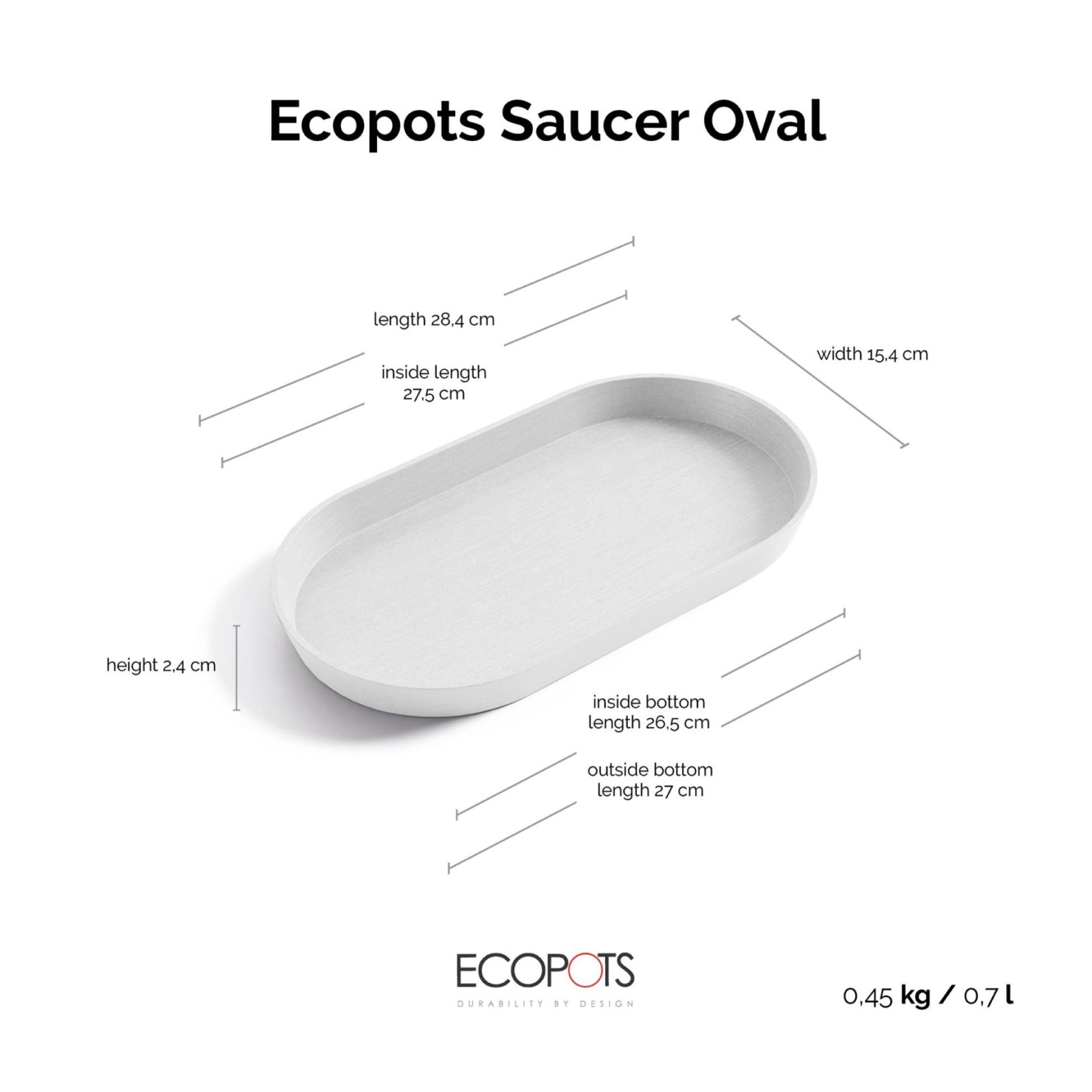 Ecopots Saucer Oval - Pure White - 28.4 ...