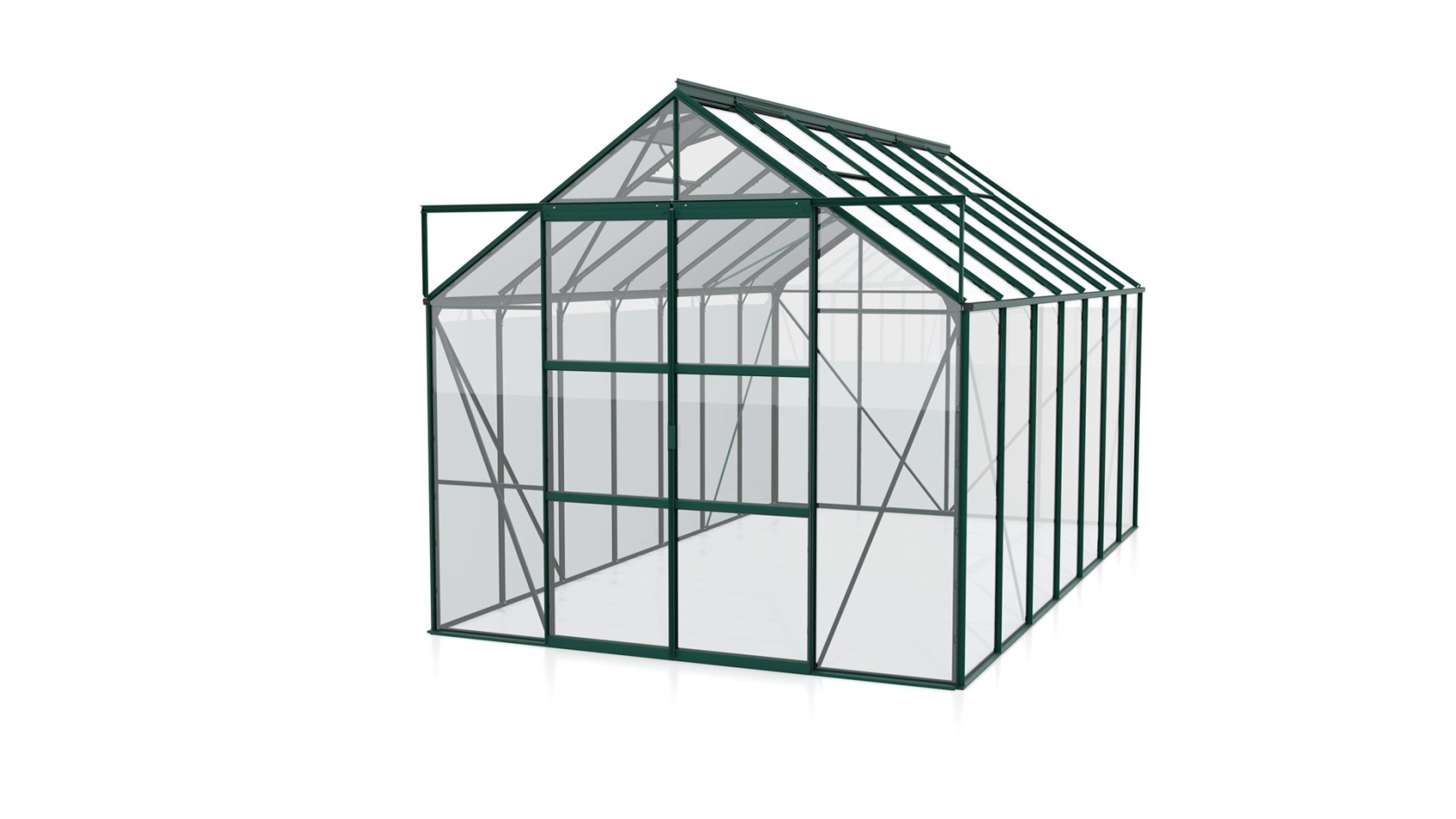 Informations sur le produit "Serre Vitavia Uranus 11.5m² avec verre de sécurité - Vert foncé - Avec double porte coulissante (B120 cm) et fondation"