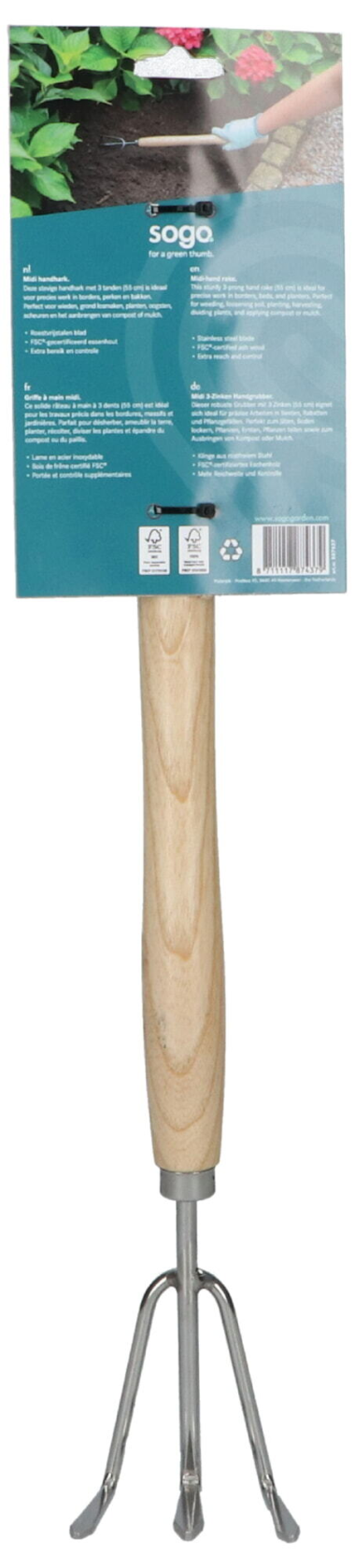 Informations sur le produit "SOGO Râteau à main 3 dents - Long manche - Acier inoxydable - Ergonomique"