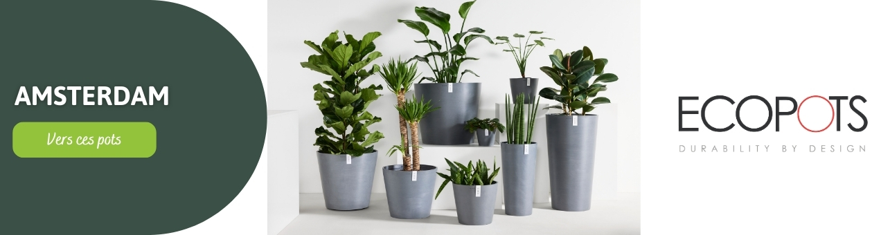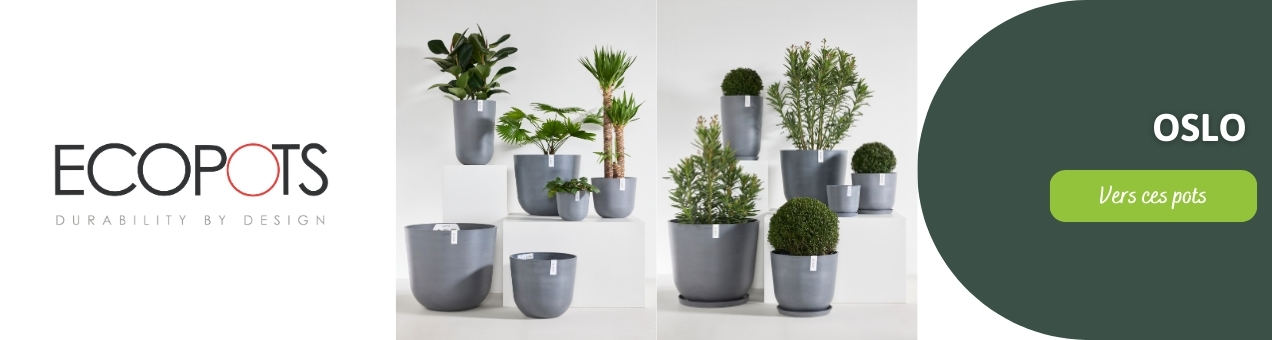 De plus, les pots sont disponibles dans une large gamme de tailles, allant des Ecopots 30 cm aux Ecopots 100 cm. Vous trouverez donc toujours la taille adaptée, tant pour les petites plantes d'intérieur que pour les grandes plantes qui attirent le regard dans le jardin.