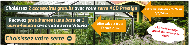 Une serre prolonge la saison de jardinage et protège vos plantes du froid, de la pluie et du vent. Vous pouvez ainsi commencer à semer plus tôt et continuer plus longtemps en automne. En outre, une serre offre un microclimat stable dans lequel les plantes poussent plus rapidement.
