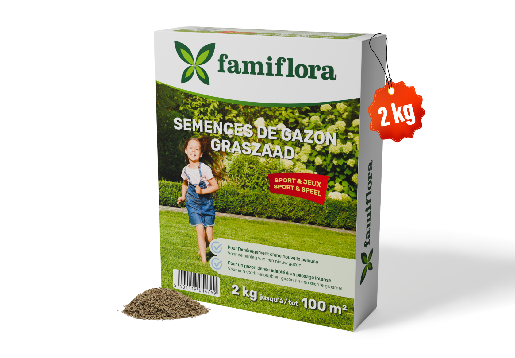 Famiflora graszaad 2kg tot 100m² - Speel & Sport - voor aanleg nieuw gazon