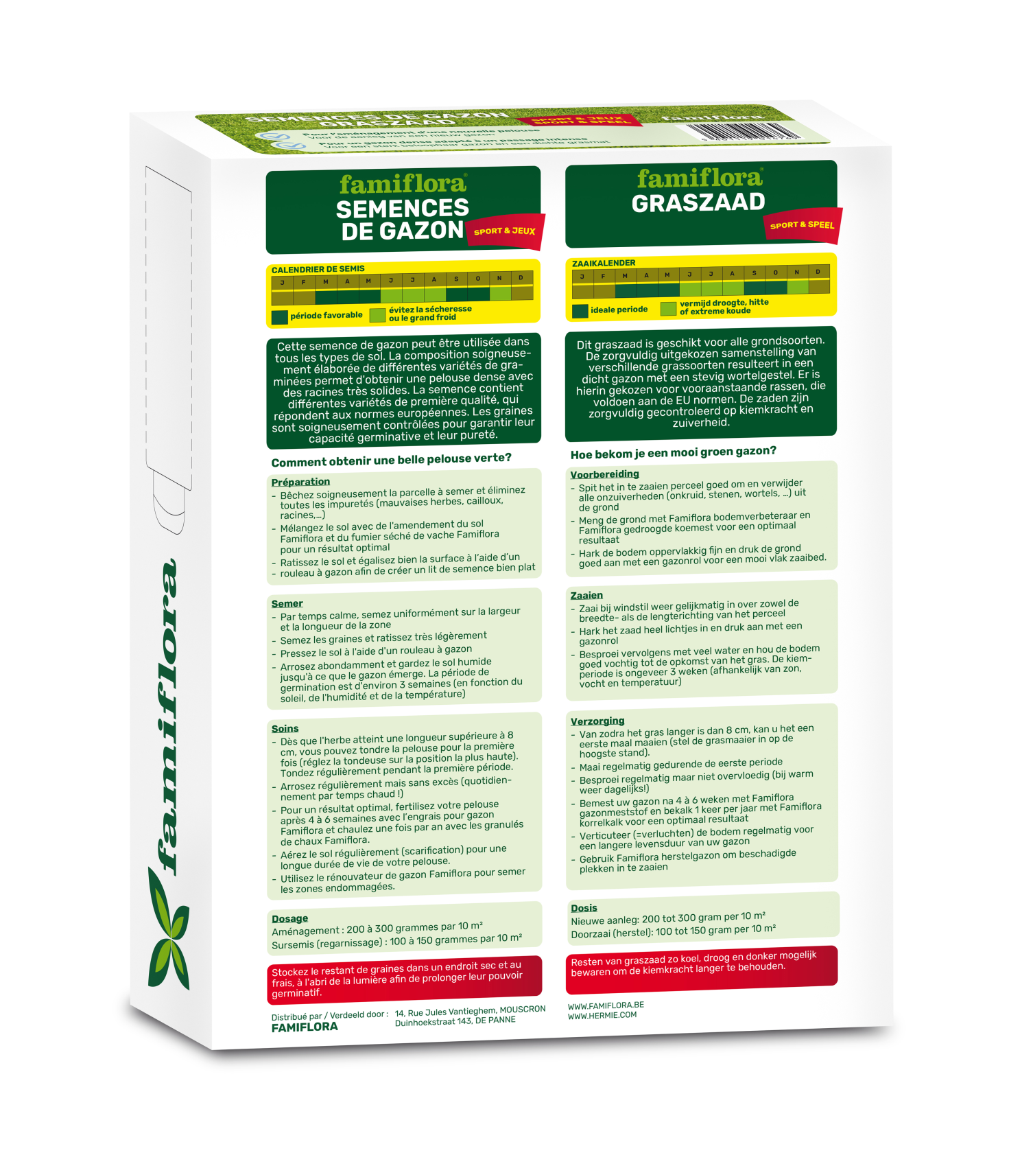 Dosis: Met deze doos van 2kg kan je tot 100m² gazon zaaien. (200gr voor 10m²)