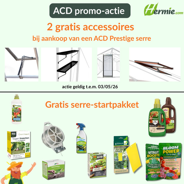 Hermie.com is oorspronkelijk gestart als een moestuinbedrijf dat moestuinplanten en hoogwaardige serres verkocht. Hoewel we ons assortiment inmiddels hebben uitgebreid, blijven we ons inzetten voor persoonlijk advies en after-sales service. Heb je een probleem? Dan kan je ons altijd contacteren.