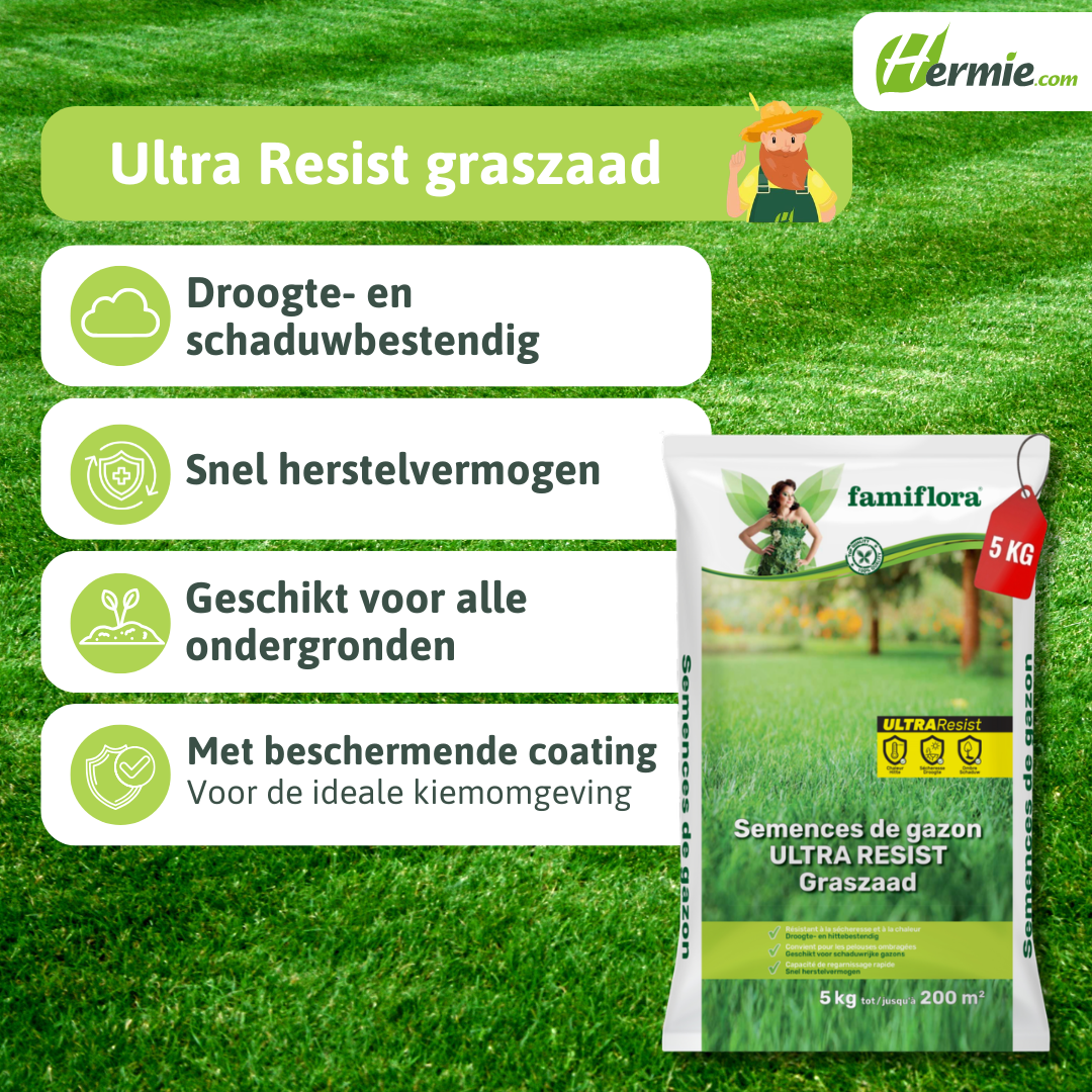 Met het Famiflora Ultra Resist graszaad heb je een echte alleskunner in huis! Kies je voor Ultra Resist? Dan kies je voor sterk & kwalitatief graszaad voor een mooie prijs!