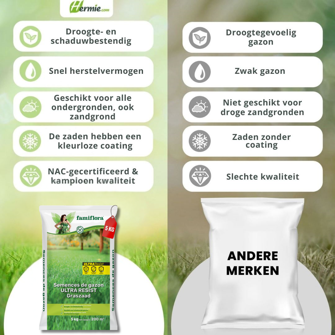 Productinformatie "Famiflora graszaad 5kg tot 200m² - Ultra Resist - alleskunner "