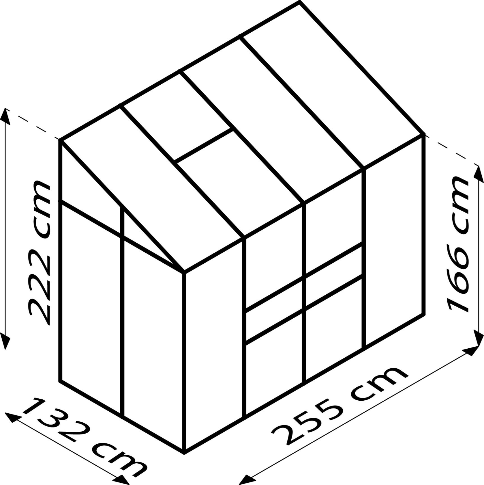 • Zijwanden: 166 cm (dakgoot hoogte)