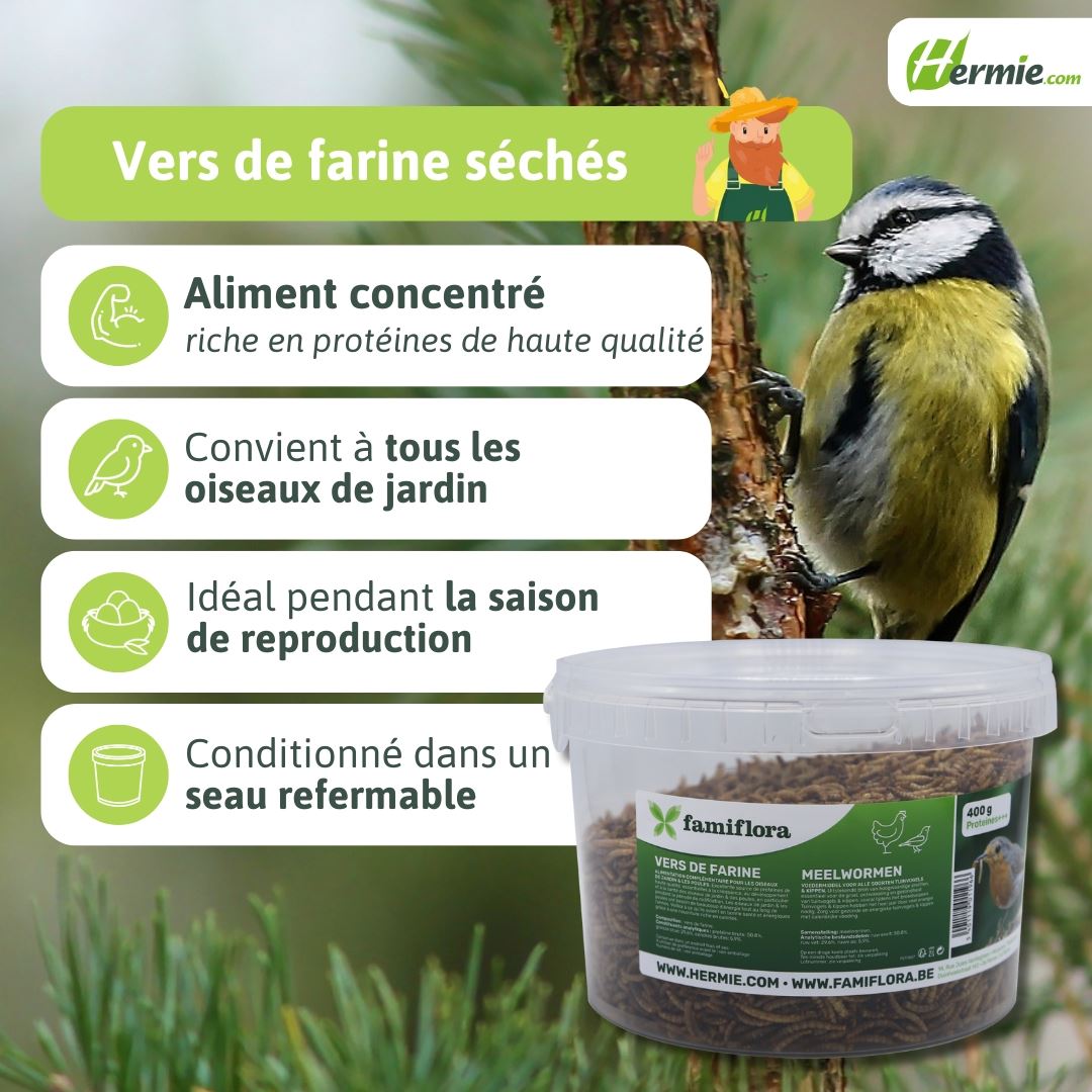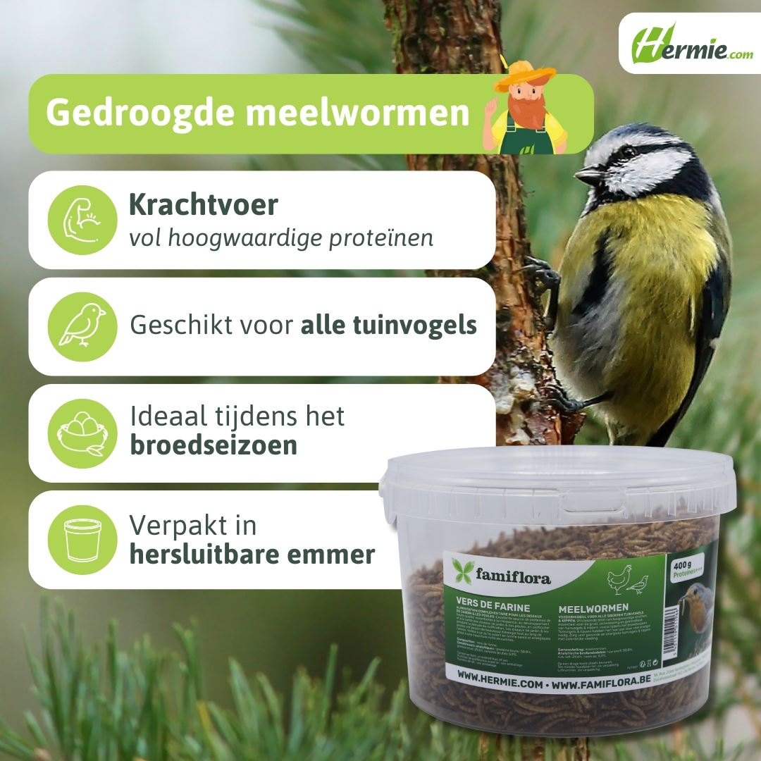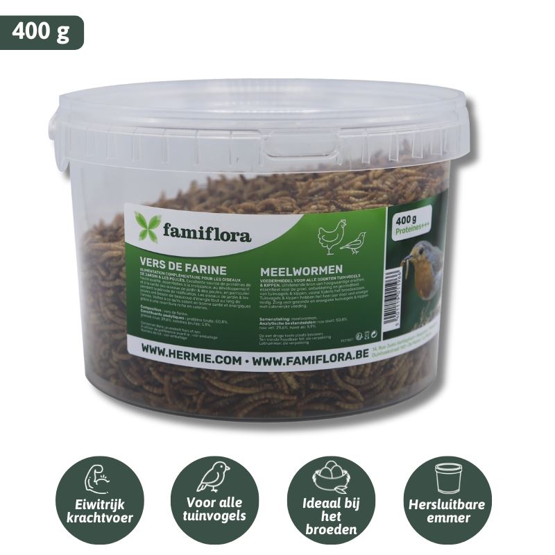 Famiflora gedroogde meelwormen 0,4 kg = ± 2,4L in hersluitbare emmer - voor tuinvogels & kippen
