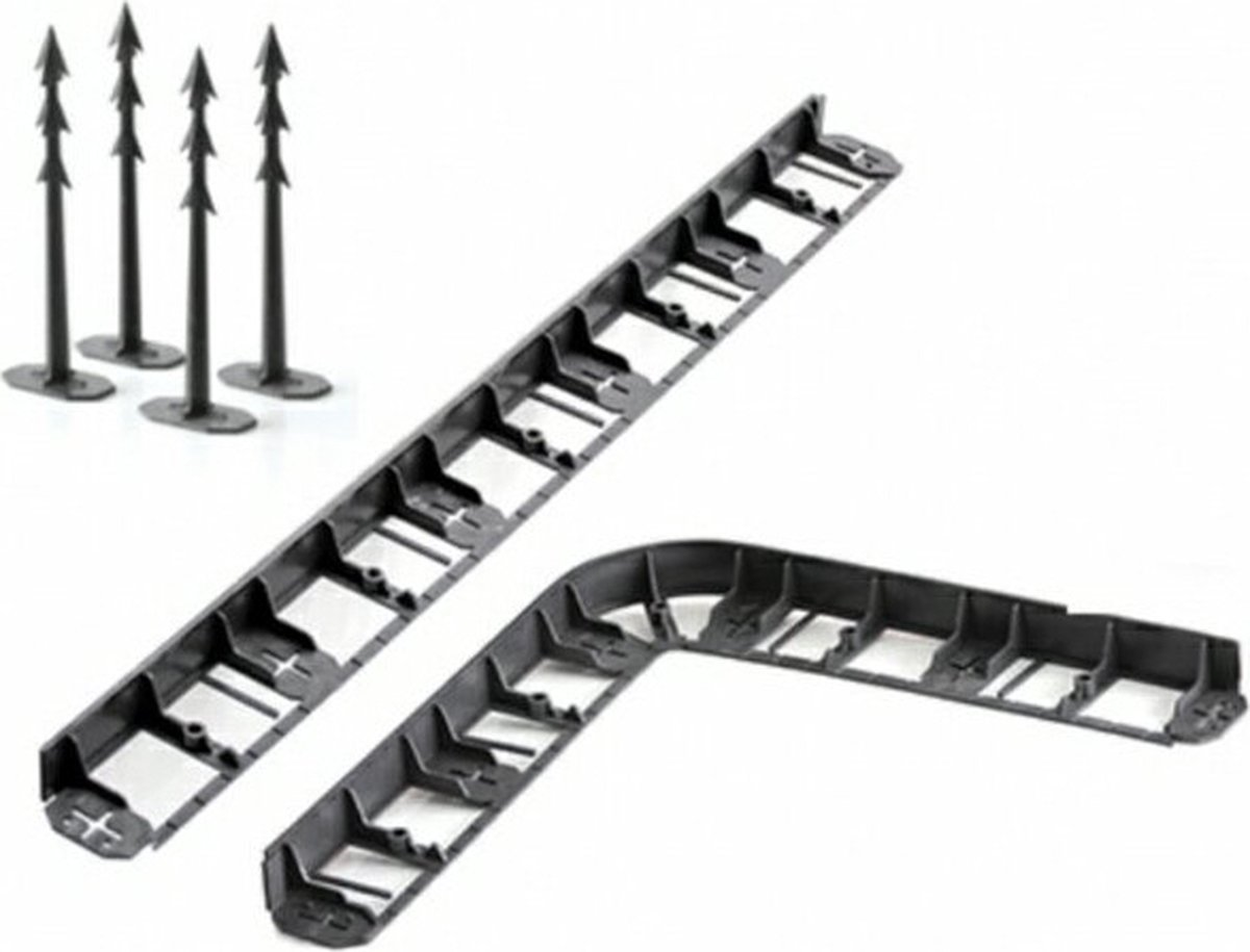 - Alles-in-één: De set wordt compleet geleverd met bevestigingspennen, zodat je de rand direct stevig in de grond kunt verankeren.