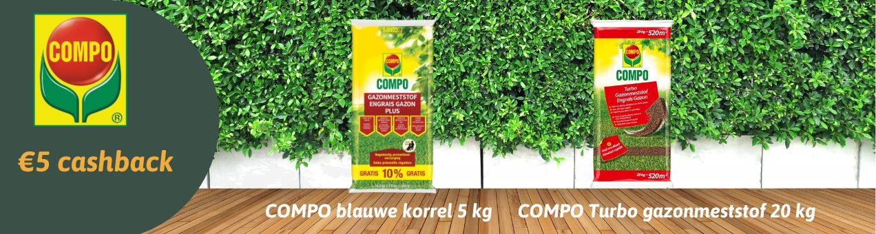 • €5 cashback op de COMPO gazonmeststof PLUS 20kg