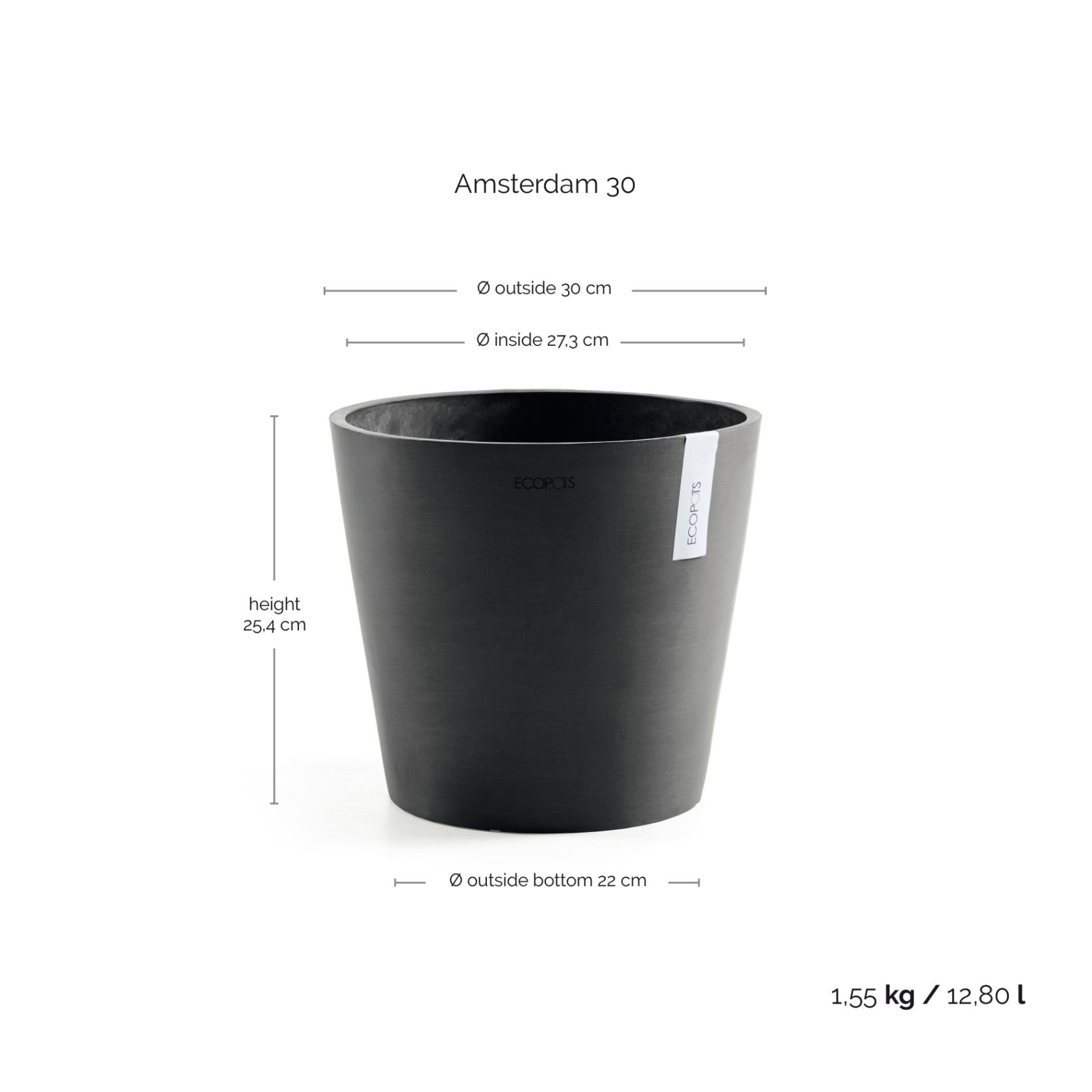 Ecopots flowerpot Amsterdam 30 - Round - Dark Grey - Diameter 30 x H25,4 cm