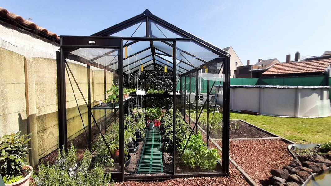 An advantage not to be underestimated is the hammered safety glass at the top because this ensures that the sunlight is broken, making your plants less likely to burn if the sunlight is too intense. Because of the hammered glass the sunlight spreads better over the entire greenhouse so the plants grow better and stronger. The condensation water does not drip down here (which is the biggest cause of tomato infestation) but flows nicely down along the glass.