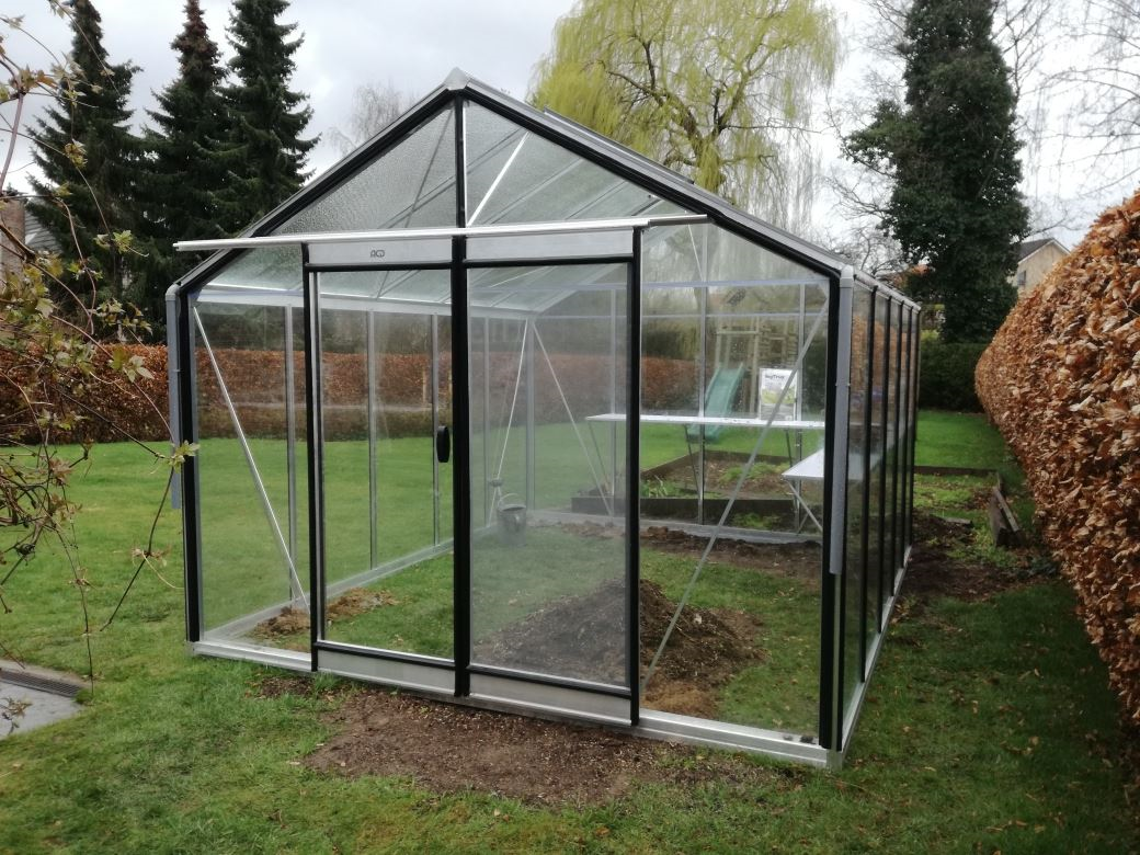One advantage not to be underestimated is the hammered safety glass at the top because this ensures that the sunlight is broken so your plants are less likely to burn when the sunlight is too intense. Because of the hammered glass, the sunlight also spreads better over the entire greenhouse so the plants grow better and more solidly. The condensation water does not drip down here (which is the biggest cause of tomato infestation) but flows nicely down along the glass.