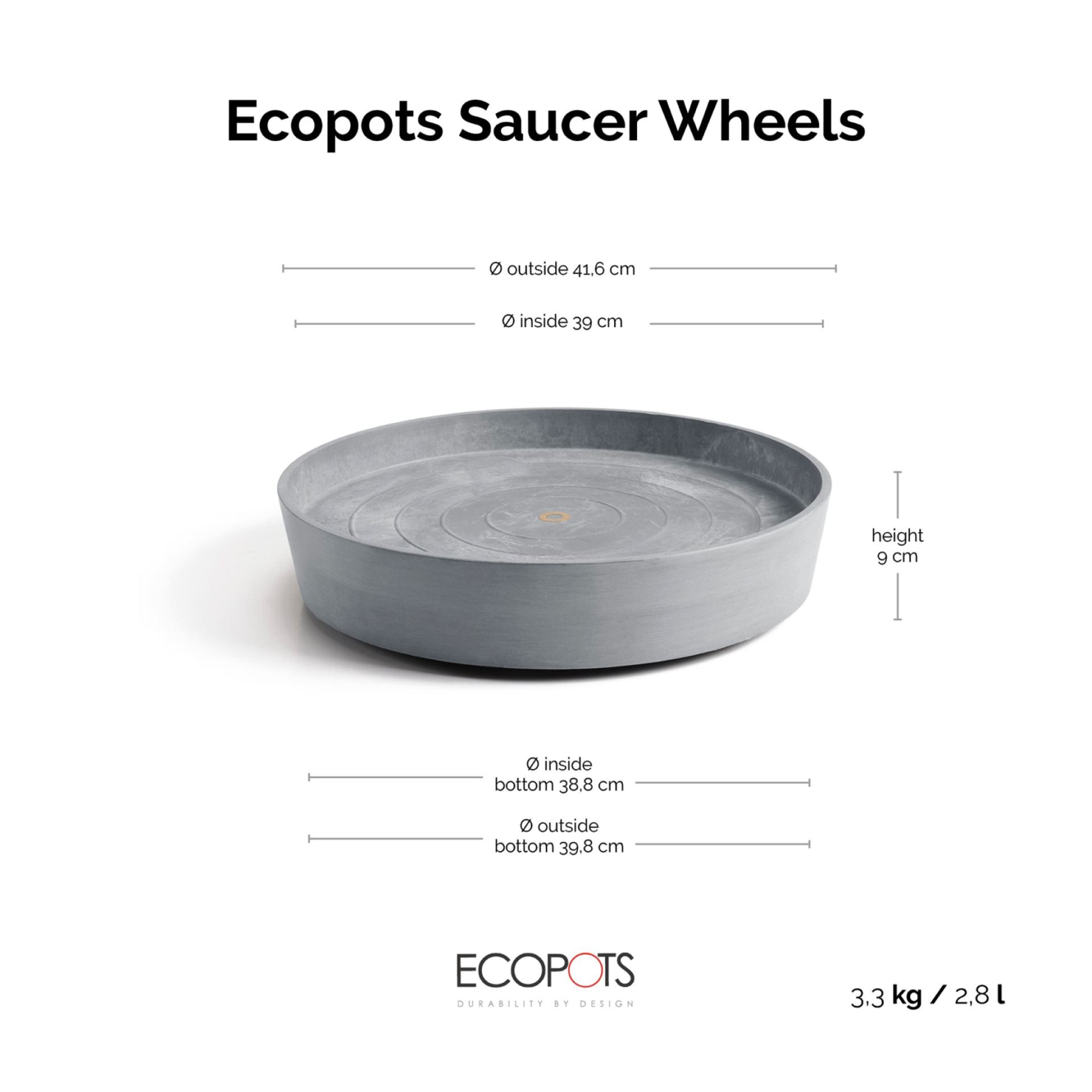 Ecopots saucer on wheels - Round - Blue Grey - Diameter 41,6 x H9 cm