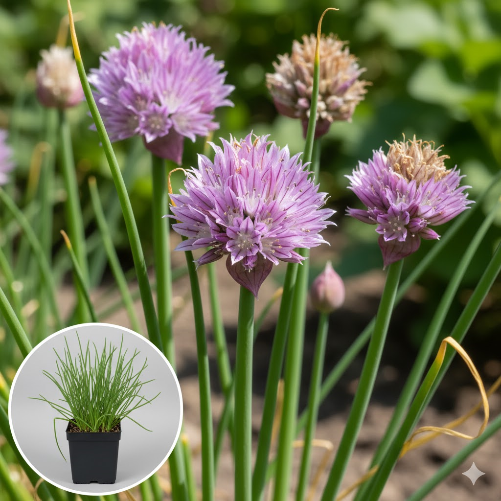 Chives can be planted in either full sun or a shady spot. Provide a chalky, well-fertilized, moist soil. Preferably use long-acting organic fertilizer and always give enough water. Planting distance: 20 cm.Chives can also be easily soaked in a flowerpot on the windowsill or balcony. The tastiest are the young thin stems. Harvest the young leaves several times a year by cutting them off just above the ground. If you cut it off halfway, the part that remains may die or get ugly brown edges.The older thick stems are tougher and have a less fresh taste. Therefore, replace your plants every 3-4 years.