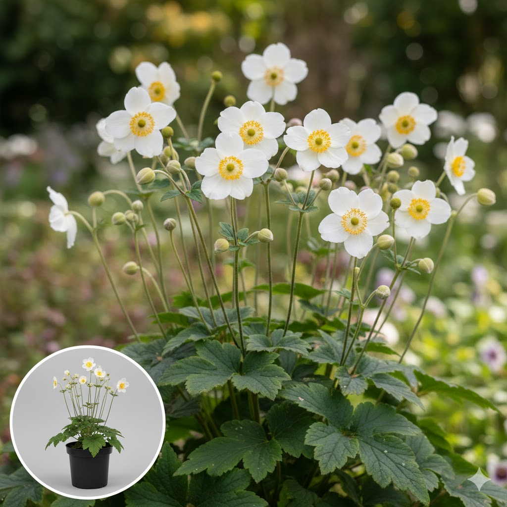 | Synonym / Trade name: | Anemone 'Honorine Jobert', Anemone japonica 'Alba', Anemone japonica 'Honorine Jobert', Anemone japonica alba |