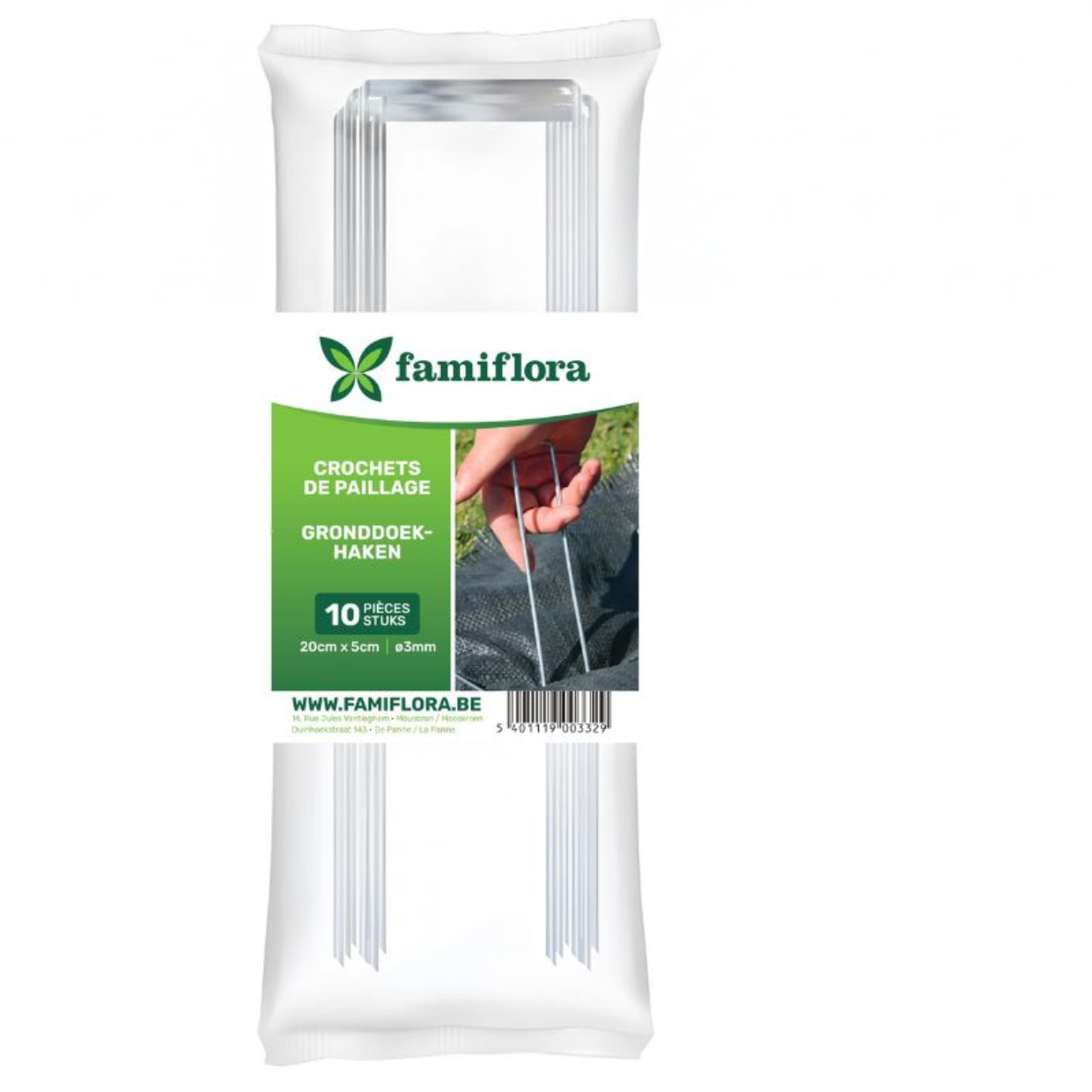 Famiflora ground cloth hooks - pins diameter 3 mm - L20 cm x W5 cm - 10 pieces