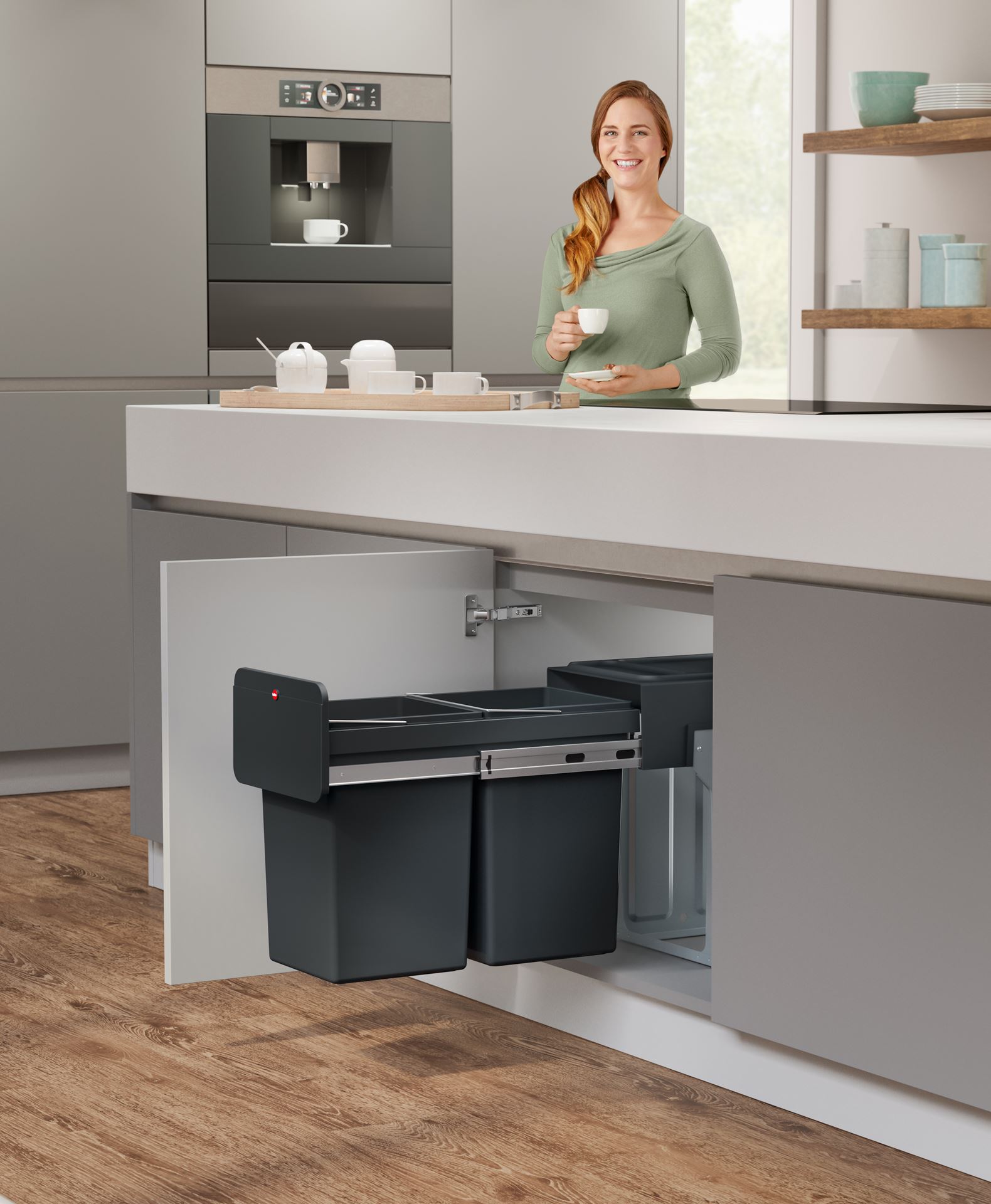 Hailo hailo ecoline desing l - 2x14l black - Household waste - 48,6x25,6x41,8cm - 2x14 liters