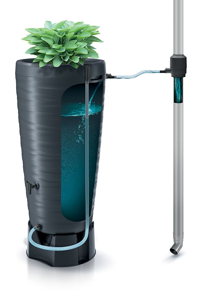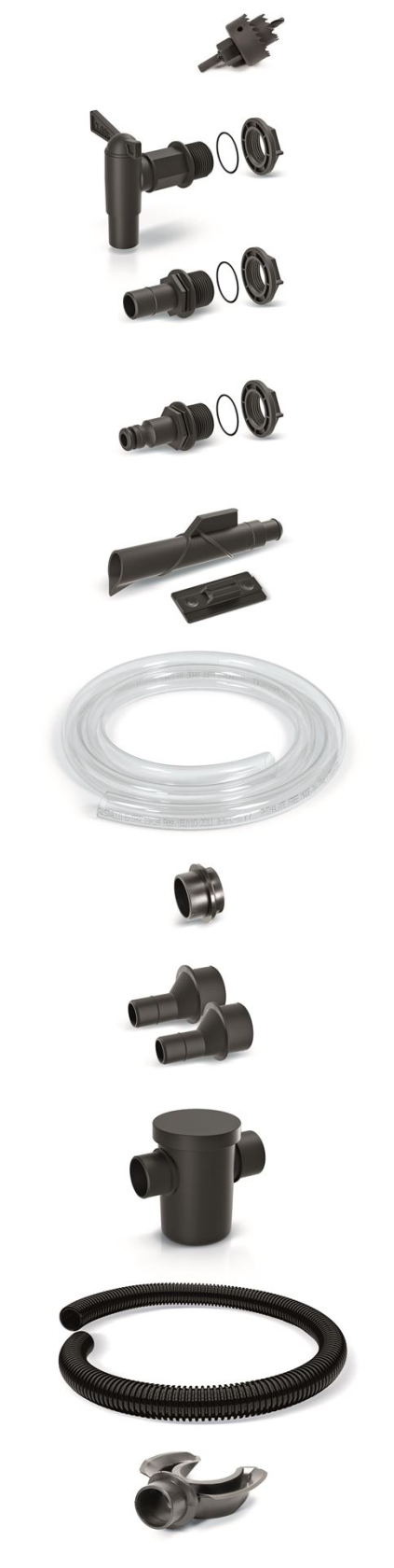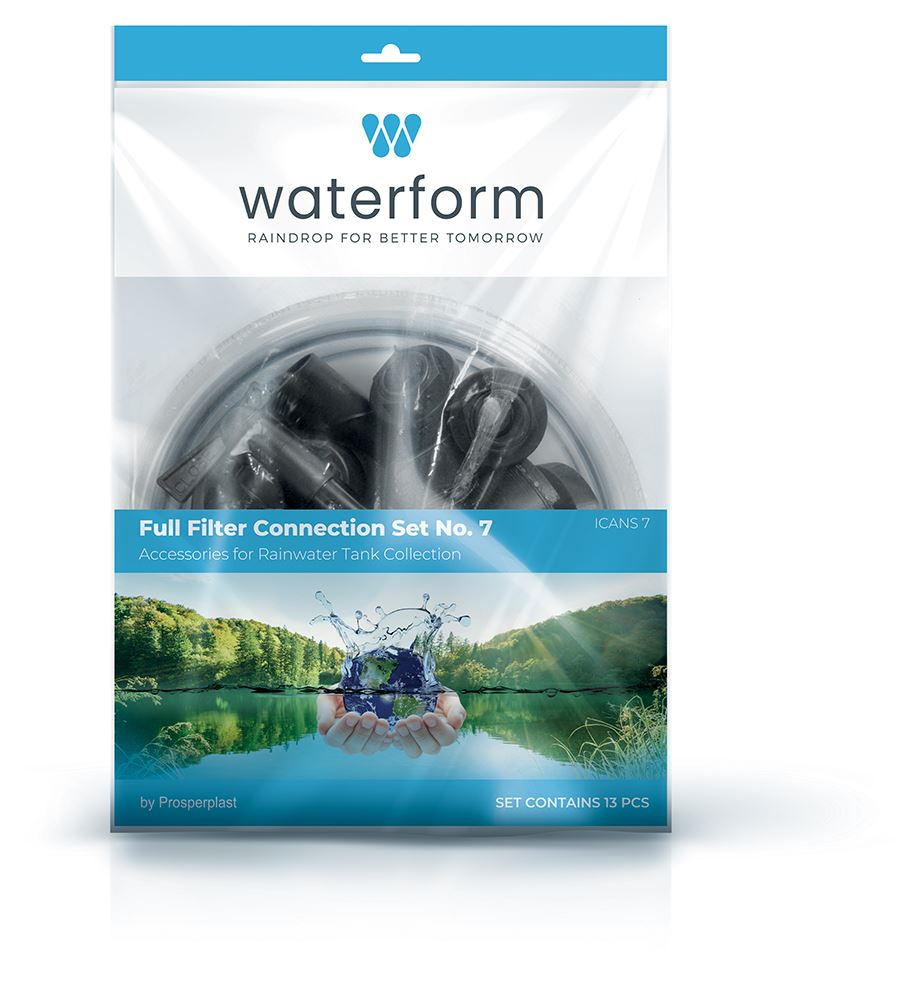 - Feed and discharge system for rainwater. The tap is equipped with an additional gasket and nut, making it compatible with all Waterform rainwater tanks.