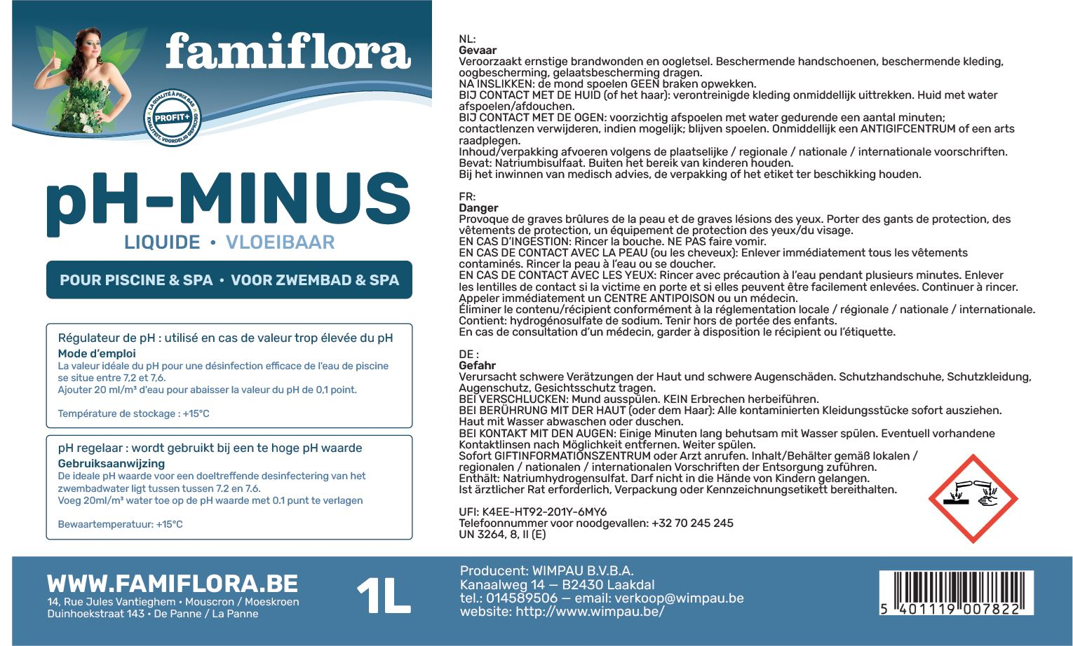 Famiflora pH-minus liquid 1L - lowers the pH level of your pool or spa!