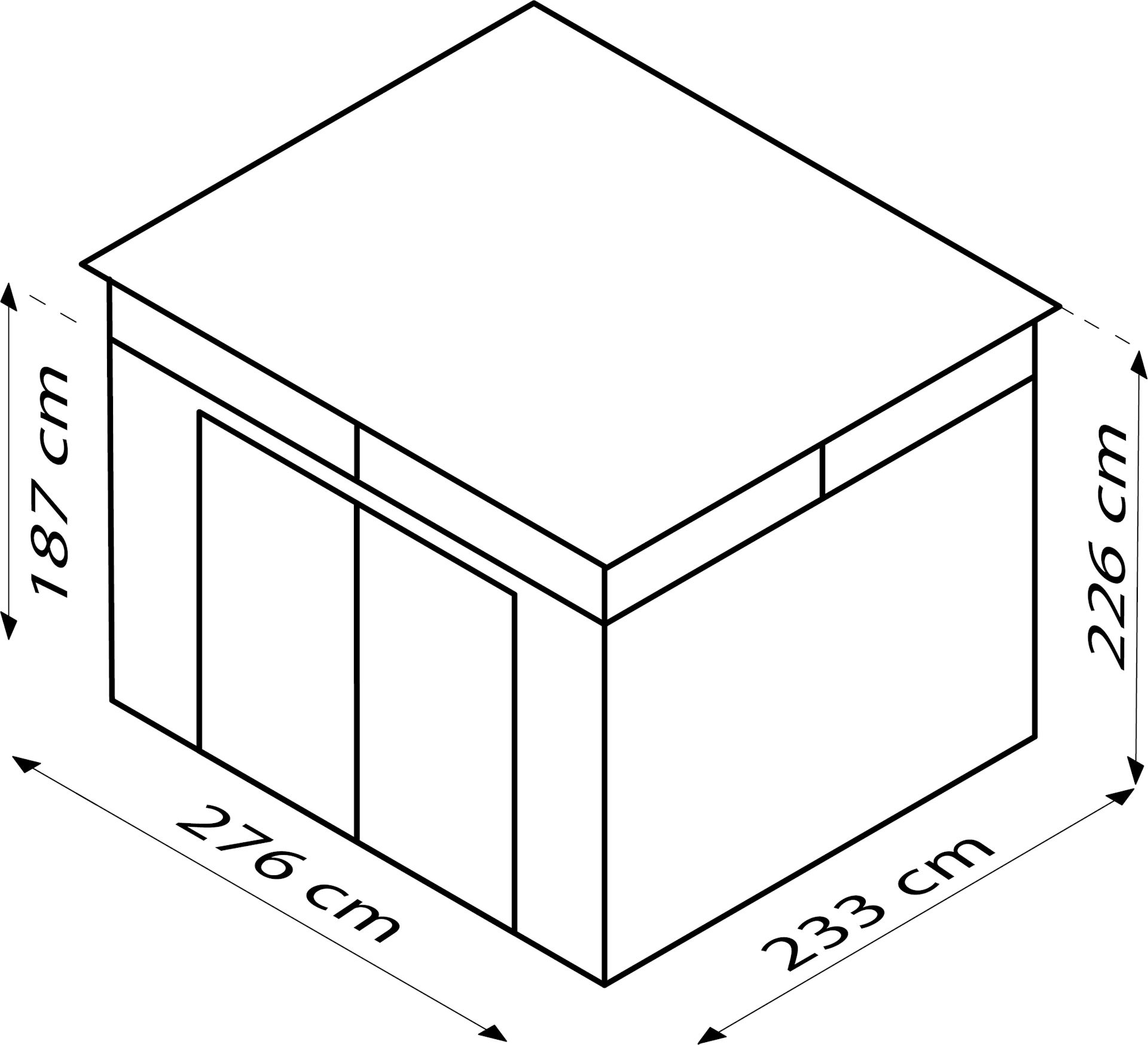 Named after the town in the Alpine region, the small tool shed also impresses with its friendly appearance and clever details. Contributing significantly to this is the all-roundlight band running between roof and door or side walls: A pleasant godsend for the otherwise closed sides - and the guarantee of daylight.Due to the more than 2 m high sides, most users have a continuous standing height in the movement zone of the tool shedWalls, roof and floor frame parts made of galvanized steel sheet are reliably protected against rust and scratches by an additional polyester paint. The outward swinging swing doors give the shed ahomely character and save space in the shed. Additional storage space is created by the canopy that is also available in a set with the Rheinfelden. This expands the covered area by another6.63 m2: perfect for bicycles and all things for which a dry place and quick access are just as importantThe Rheinfelden tool shed is delivered disassembled and without floor. The floor frame is included. It facilitates the securing of a foil to protect against moisture from the ground andthe installation of a floor in the tool shed.