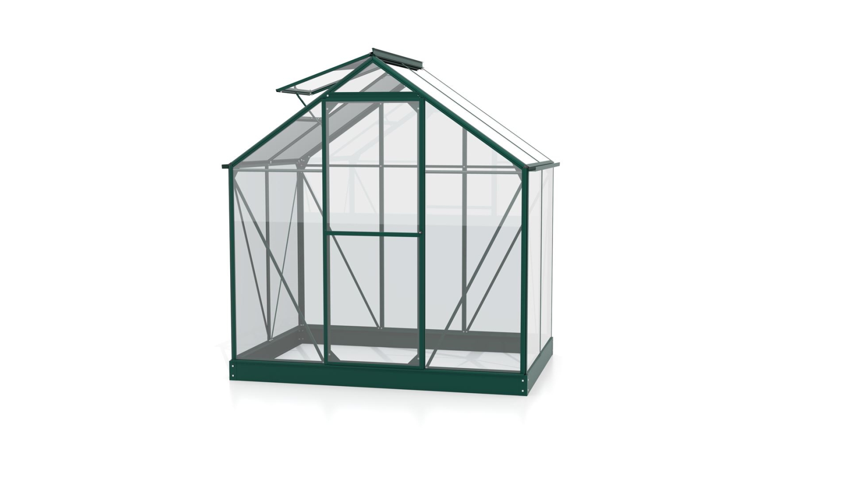 Vitavia Triton greenhouse 2.6m² with safety glass - Dark green - With flexible door arrangement (can be set as a French door or sliding door) and foundation