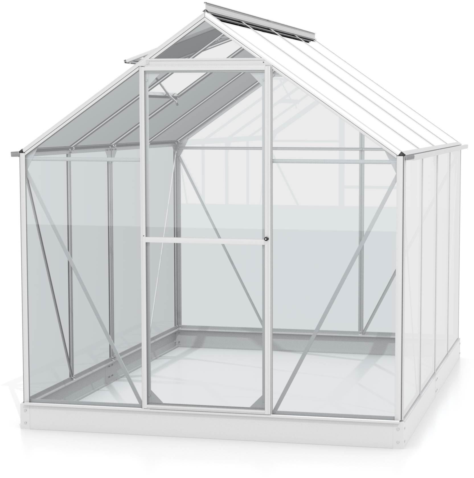 The glass walls and roof glazing consist of three parts (instead of one piece) that fit together seamlessly using the glass clips provided, minimizing the risk of glass breakage during installation. The end result is always a fully securely assembled greenhouse.