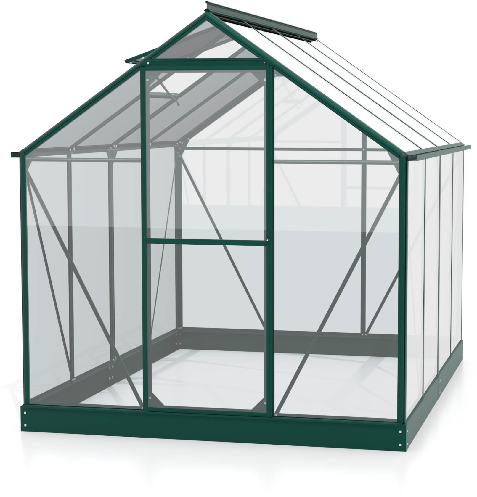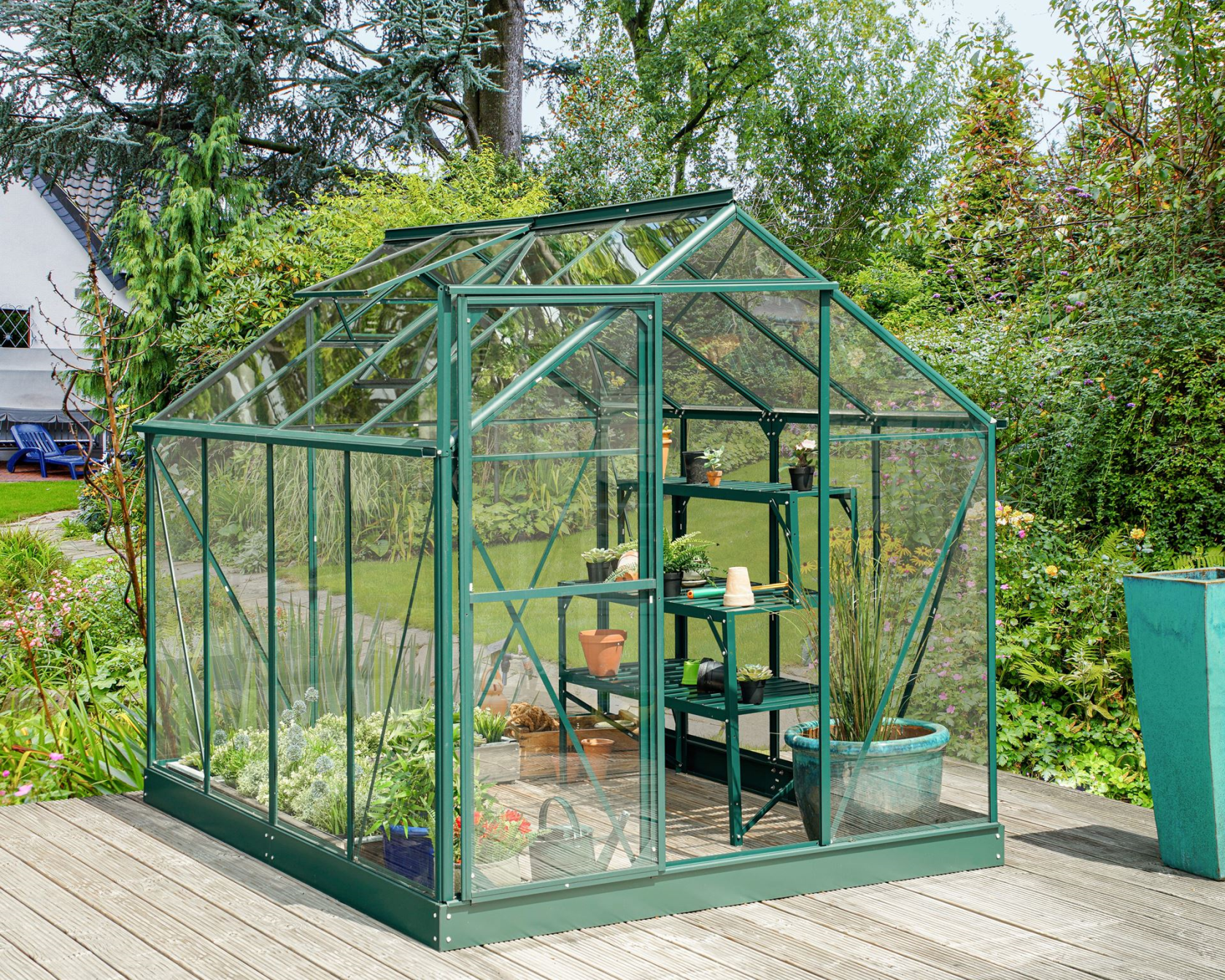 Vitavia Triton greenhouse 5m² with safety glass - Dark green - With flexible door arrangement (can be set up as a French door or sliding door) and foundation