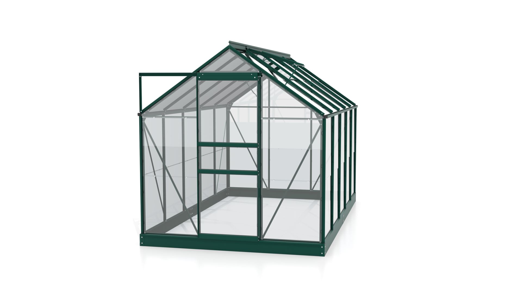 Vitavia Planet greenhouse 6.2m² with safety glass - Dark green - With single sliding door (B61 cm) and foundation