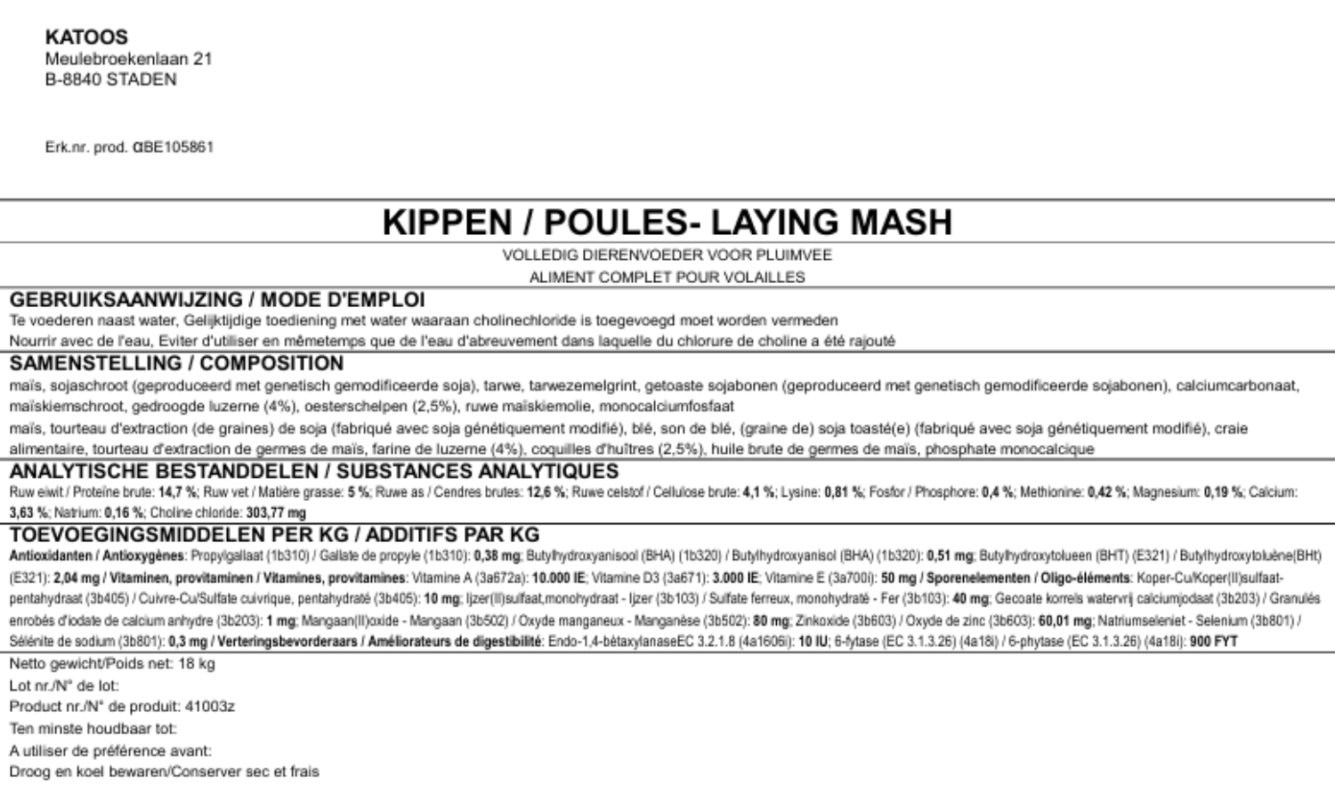 With Katoos Laying Mash you offer your chickens the perfect nutrition for good health, strong eggs and longevity.