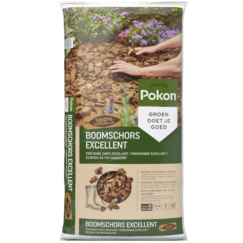 Give your borders, planters and garden a stylish finish with Pokon Tree Bark Excellent. This fine, high-quality tree bark is ideal for smaller areas and provides a neat, manicured look with extra protection for your soil and plants.