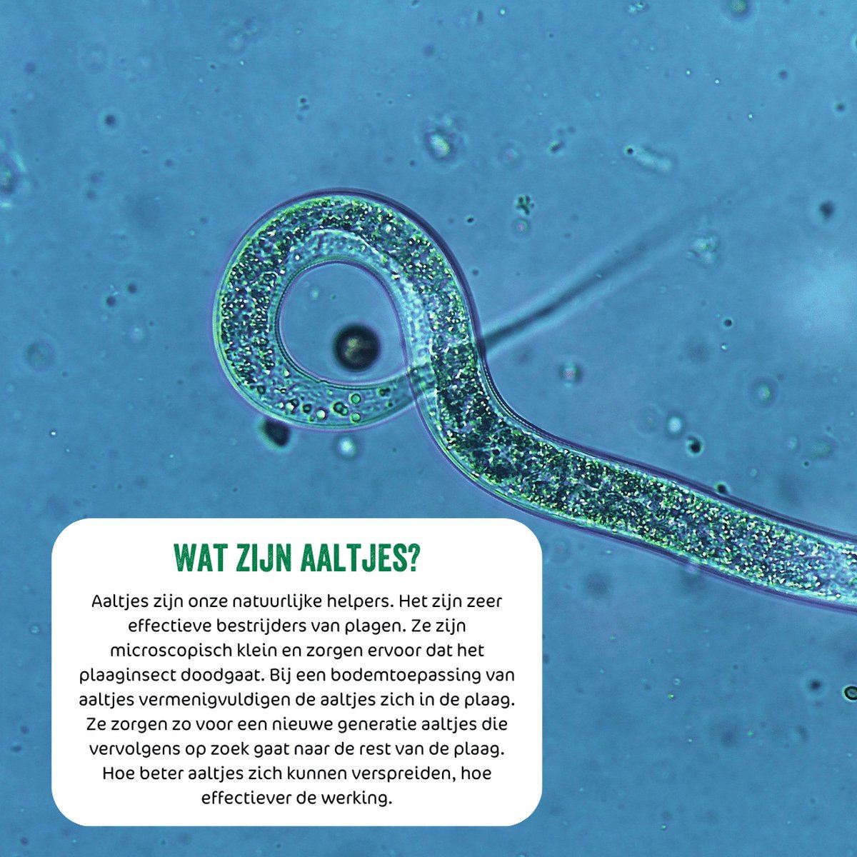This product is ideal for an area of 60 m² and contains microscopic worms, also called nematodes. These natural enemies invade the larvae and use them as food, causing the larvae to die within days. And the best part? New nematodes emerge from the dead larvae, ensuring continuous protection for your plants.