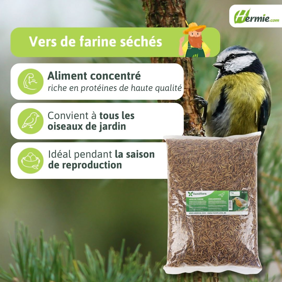 Famiflora dried mealworms 1 kg = ± 6L in bag - for garden birds, chickens and fish