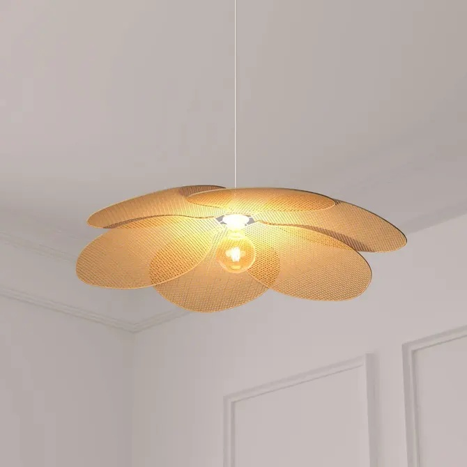 Breng een serene en natuurlijke sfeer in huis met de Atmosphera hanglamp Rym. Deze lamp is vormgegeven als een prachtige, openstaande bloem en is vervaardigd uit hoogwaardig bamboe. De verfijnde structuur zorgt voor een prachtig schaduwspel op de muren, terwijl het zachte licht voor onmiddellijke gezelligheid zorgt in je woonkamer, slaapkamer of boven de eettafel. 🏠🌿