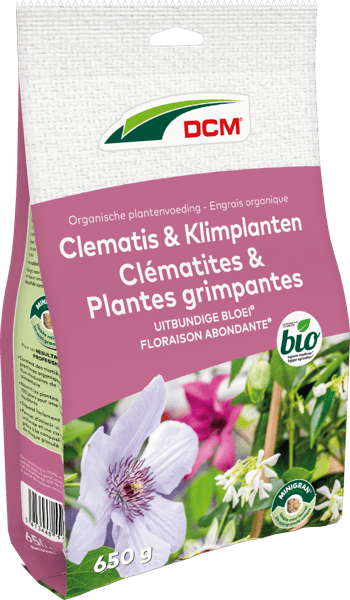 Fertilizer with ideal composition for feeding clematis and other climbing plants such as passiflora, honeysuckle, wisteria, ... The high potassium content ensures strong plants and abundant flowering with intense colors. Applicable in the organic garden.How to use