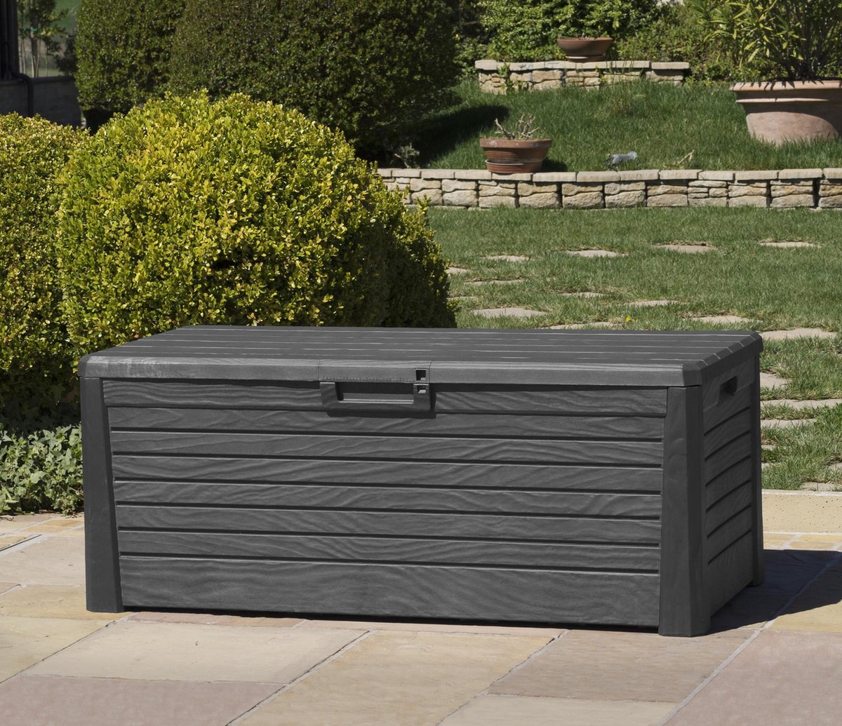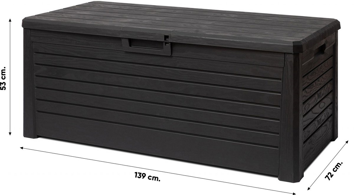 Ben je de trotse eigenaar van een flinke loungeset en zoek je een slimme plek voor al die kussens? De Toomax Florida opbergbox 550L in Donker Antraciet is je ultieme redder in nood! 🦸♂️ Deze extra grote kussenkist biedt niet alleen een veilige, geventileerde plek voor al je tuinaccessoires en speelgoed, maar is ook nog eens een lust voor het oog dankzij de strakke houtlook afwerking. Een stijlvolle, robuuste toevoeging voor een perfect opgeruimd terras! 🌳