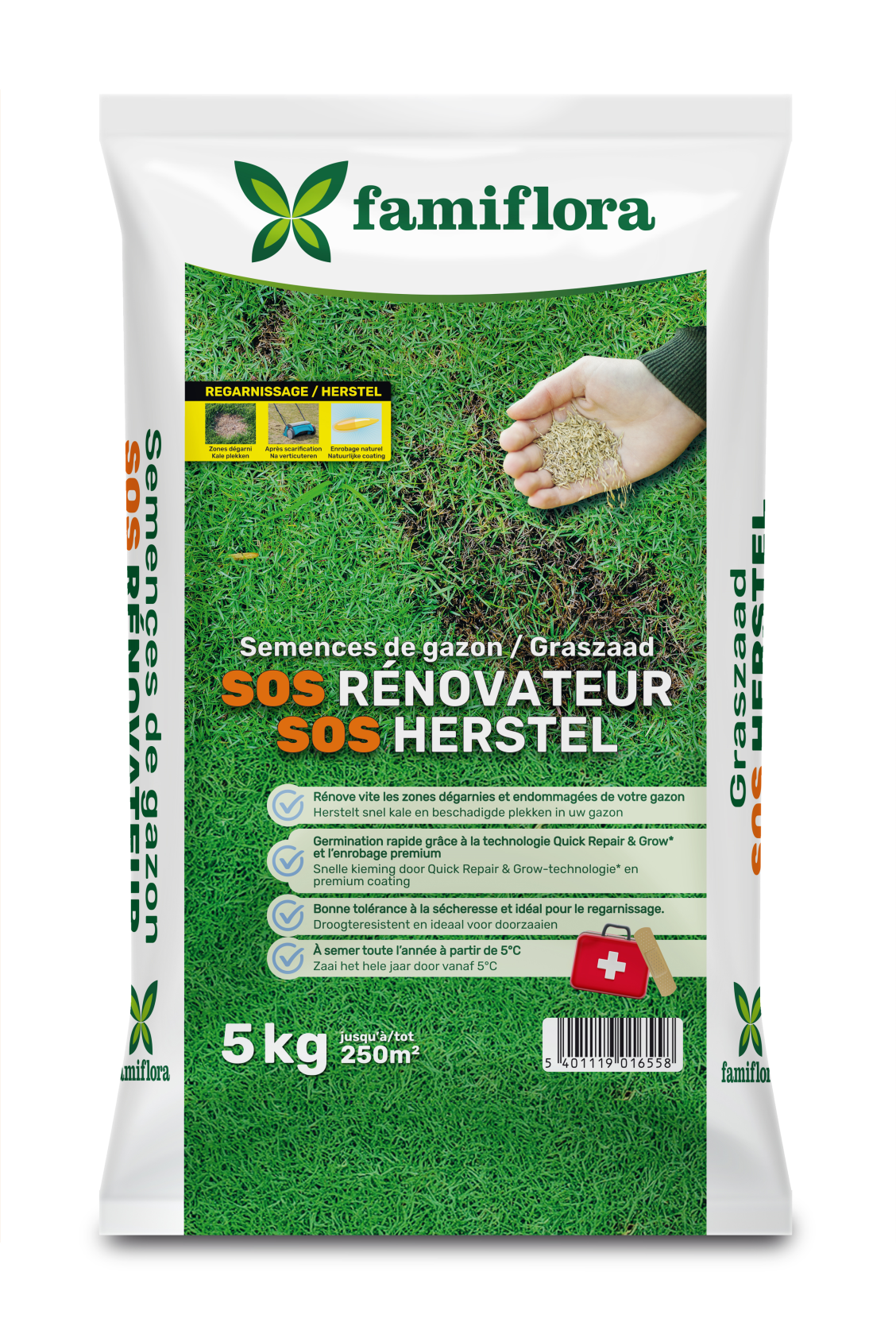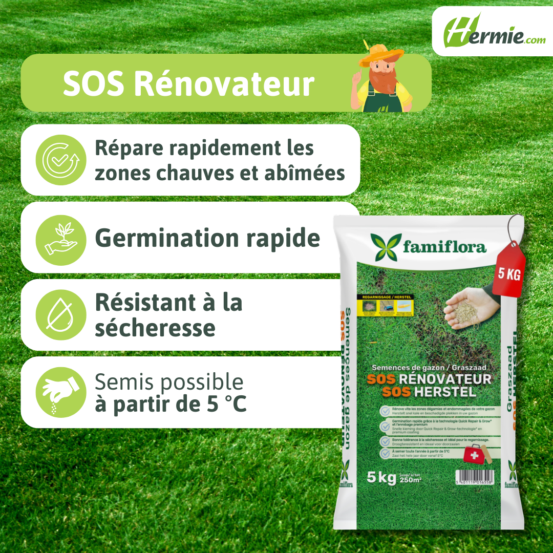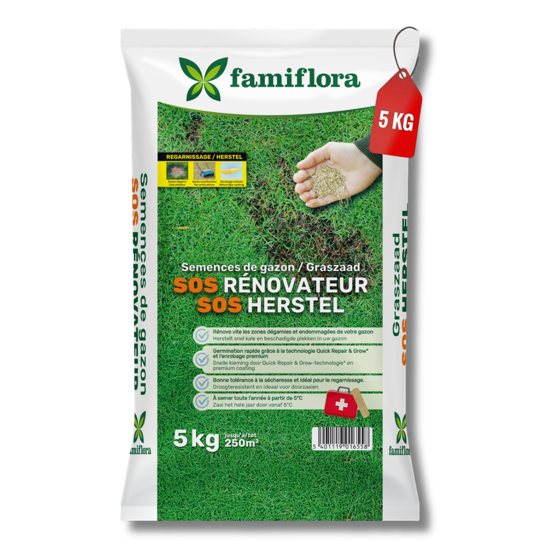 Famiflora SOS repair lawn grass seed is specially developed for repairing and overseeding an existing lawn. 🌿