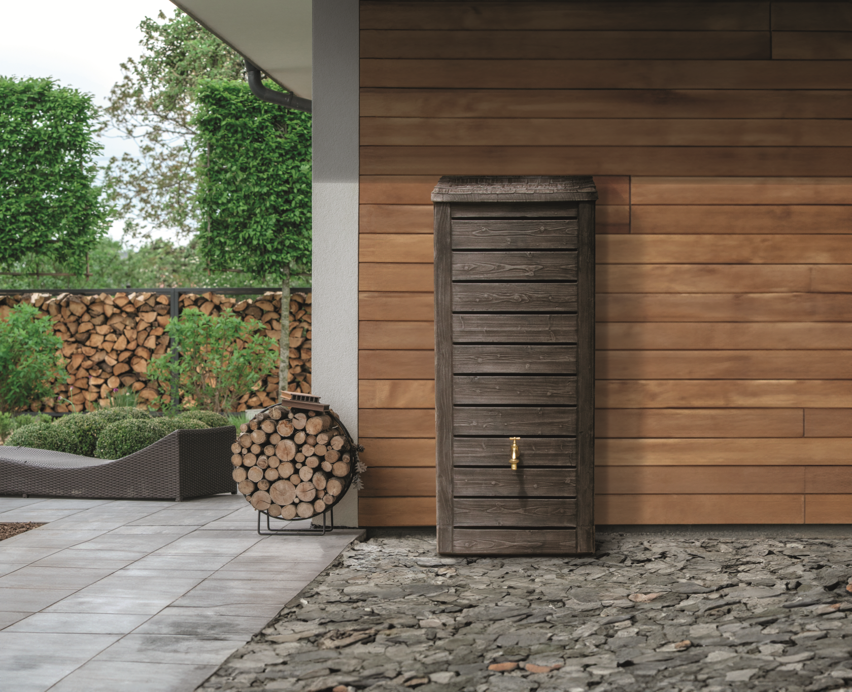 Prosperplast Norway Rain Barrel - 40 x 60 x 137 cm - Wood-look Ombre
