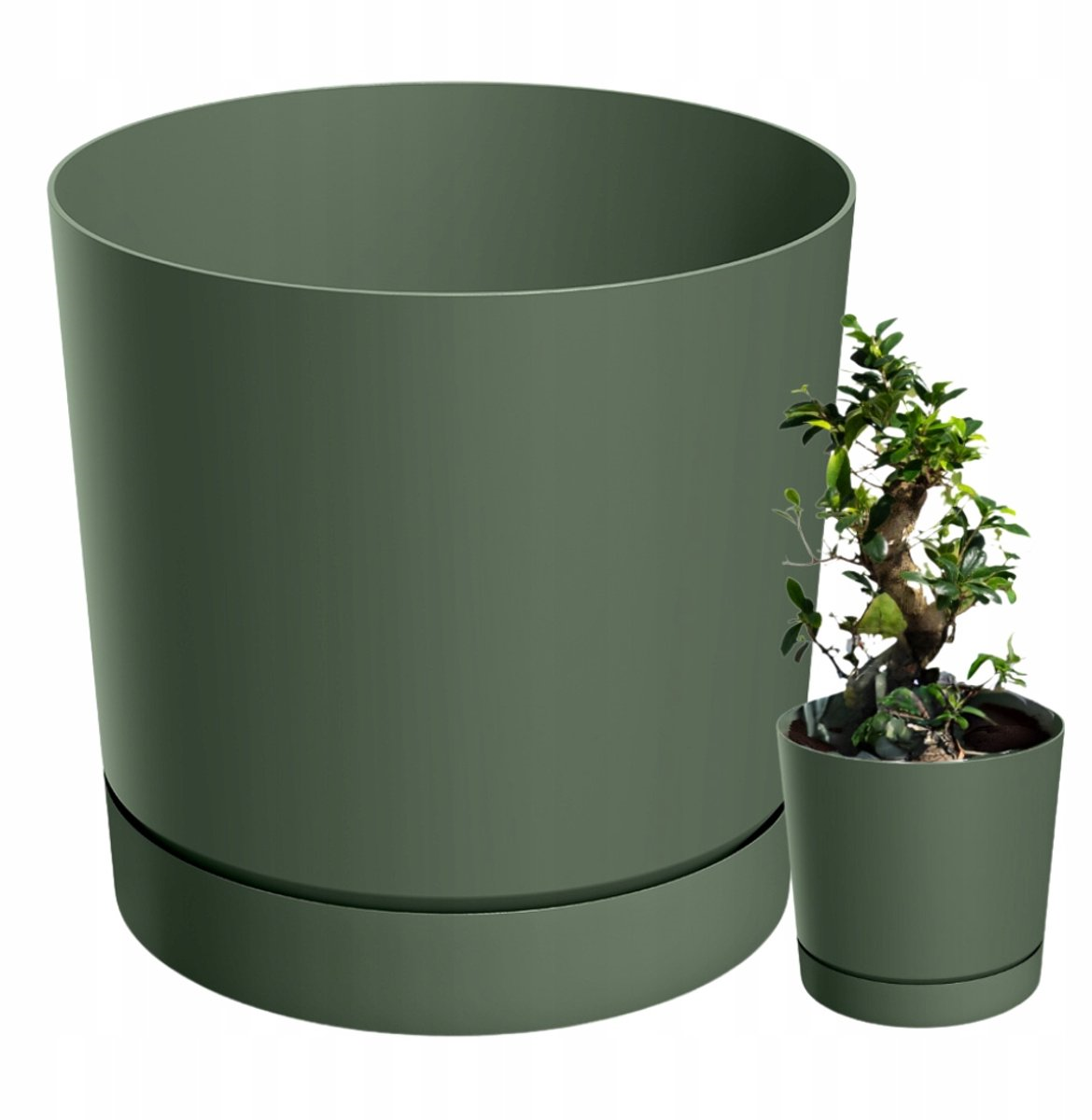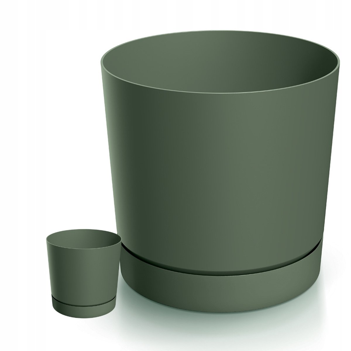 Product Specifications: Width/Diameter: 29.2 cm, Length: 29.2 cm, Height: 28.3 cm. Capacity: 14.5 L. Includes removable saucer. Color: Pine green (Pine green). Finishing: Matt. Material: Plastic. Use: indoors and outdoors. Reference: DPOP300-2411U.