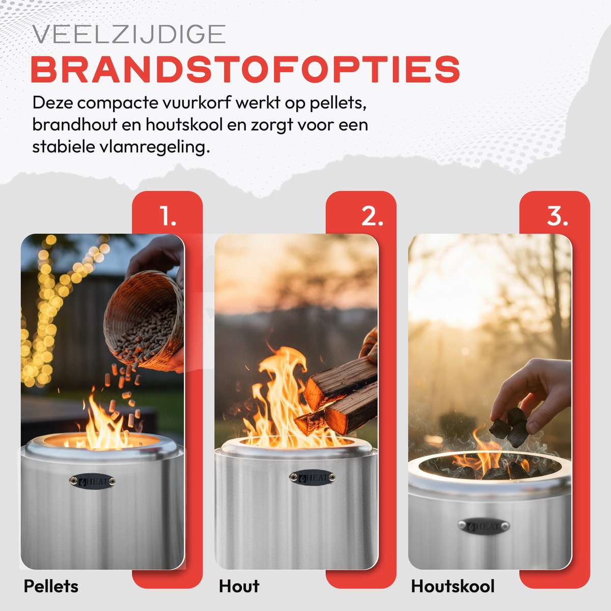 Transform your garden table into the warmest and coziest centerpiece of the evening in no time! The HEAT Rokfri Small in stainless steel is a compact table fireplace (16x16x20 cm) with a brilliant secret: it burns virtually without smoke! 🚫💨 Thanks to the double-walled stainless steel construction, the air is preheated for secondary combustion. In this process, smoke particles are destroyed before they escape. This allows you and your guests to enjoy beautiful flames and warmth, without stinging eyes or clothing that smells like campfire! ✨