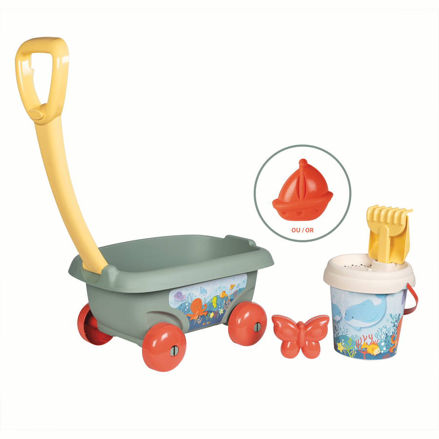 Smoby Green Beach Trolley - With bucket and play accessories - From 18 months - 100% Recyclable