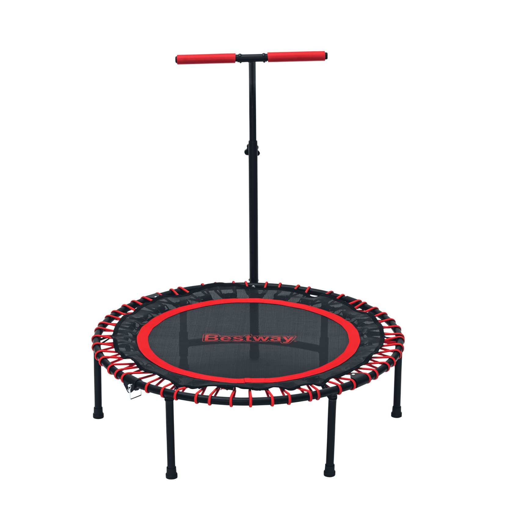 The handle can be adjusted to 4 positions, giving you a lot of freedom in your exercises and jumping techniques. You can adjust the height between 104 and 135 cm making it perfectly sized. The handle also provides the necessary support. Do you prefer to jump freely? Then you can also simply remove the handle.