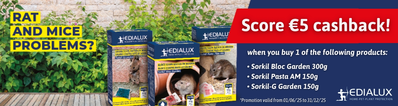 Buy rat and mouse poison from Edialux's Sorkil range between 01/06/25 and 31/12/25 and temporarily enjoy €5 cashback on the purchase price.