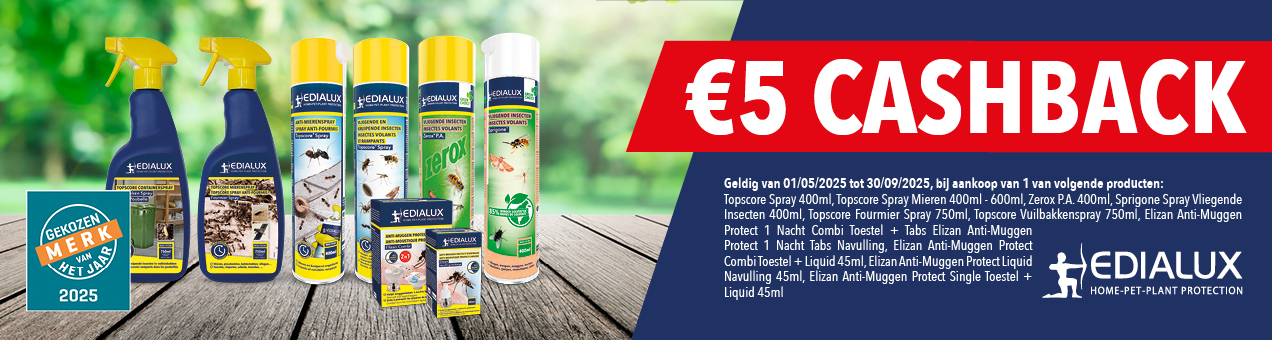 Buy insect, fly and wasp repellents from the Edialux range between 01/03/25 and 31/07/25 and temporarily enjoy €5,00 cashback on the purchase price.